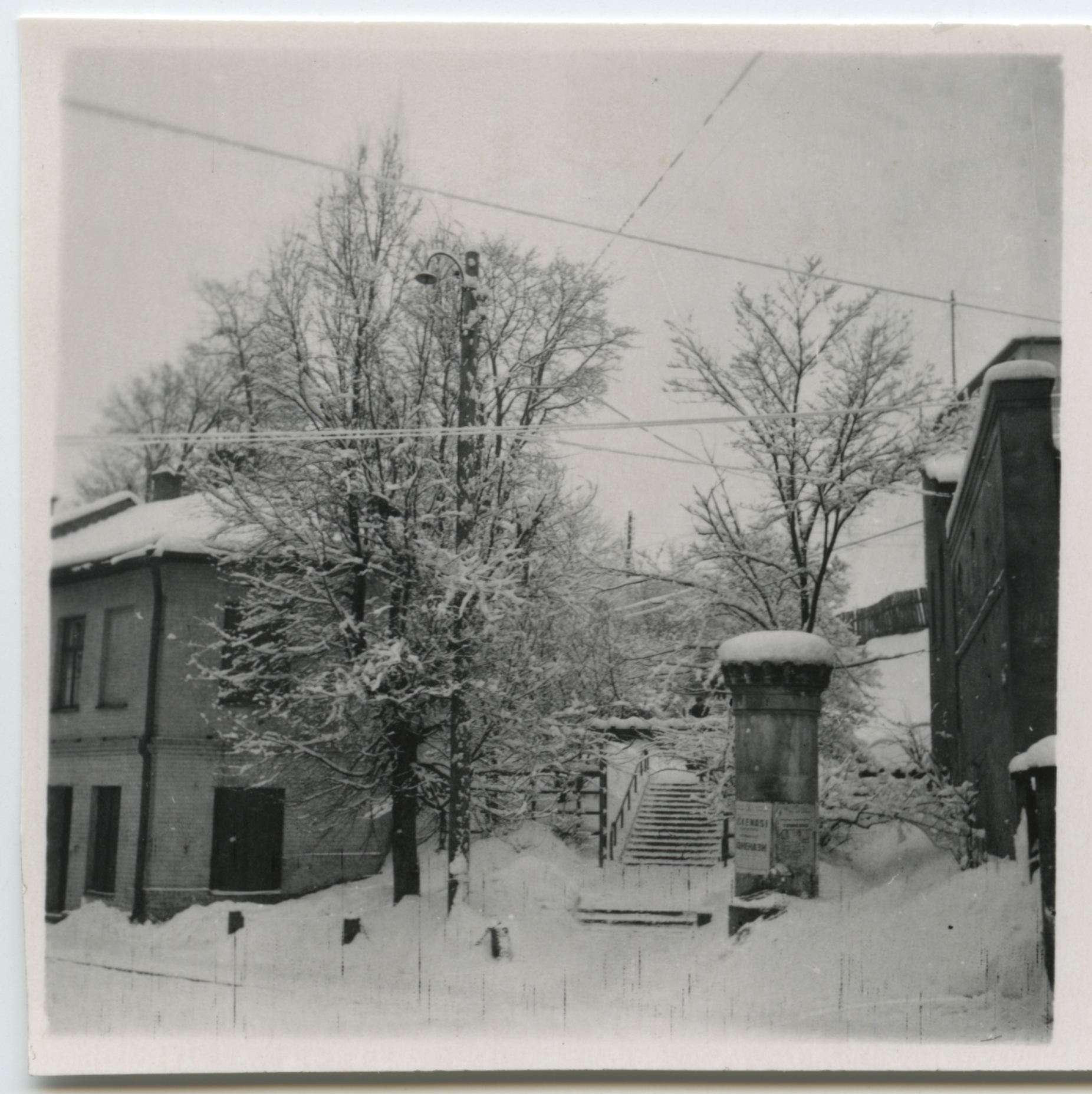 Vaade Vallikraavi tänavalt Struve tänava poole talvel