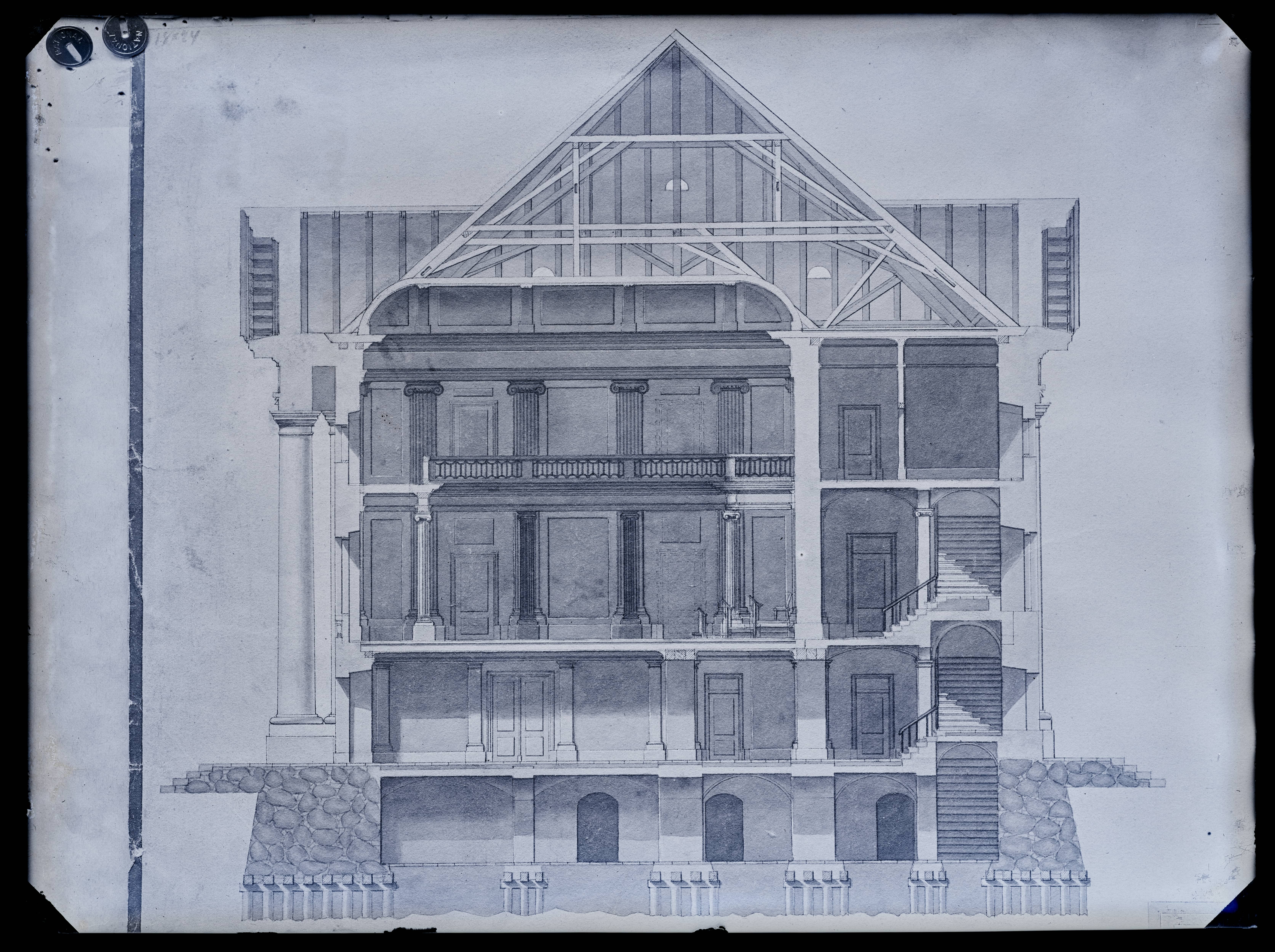 Tekst negatiivi ümbrikul: Krause. Ülikooli peahoone põikilõige. Foto Lomp, 1924. joonis. Tempel: Instituut