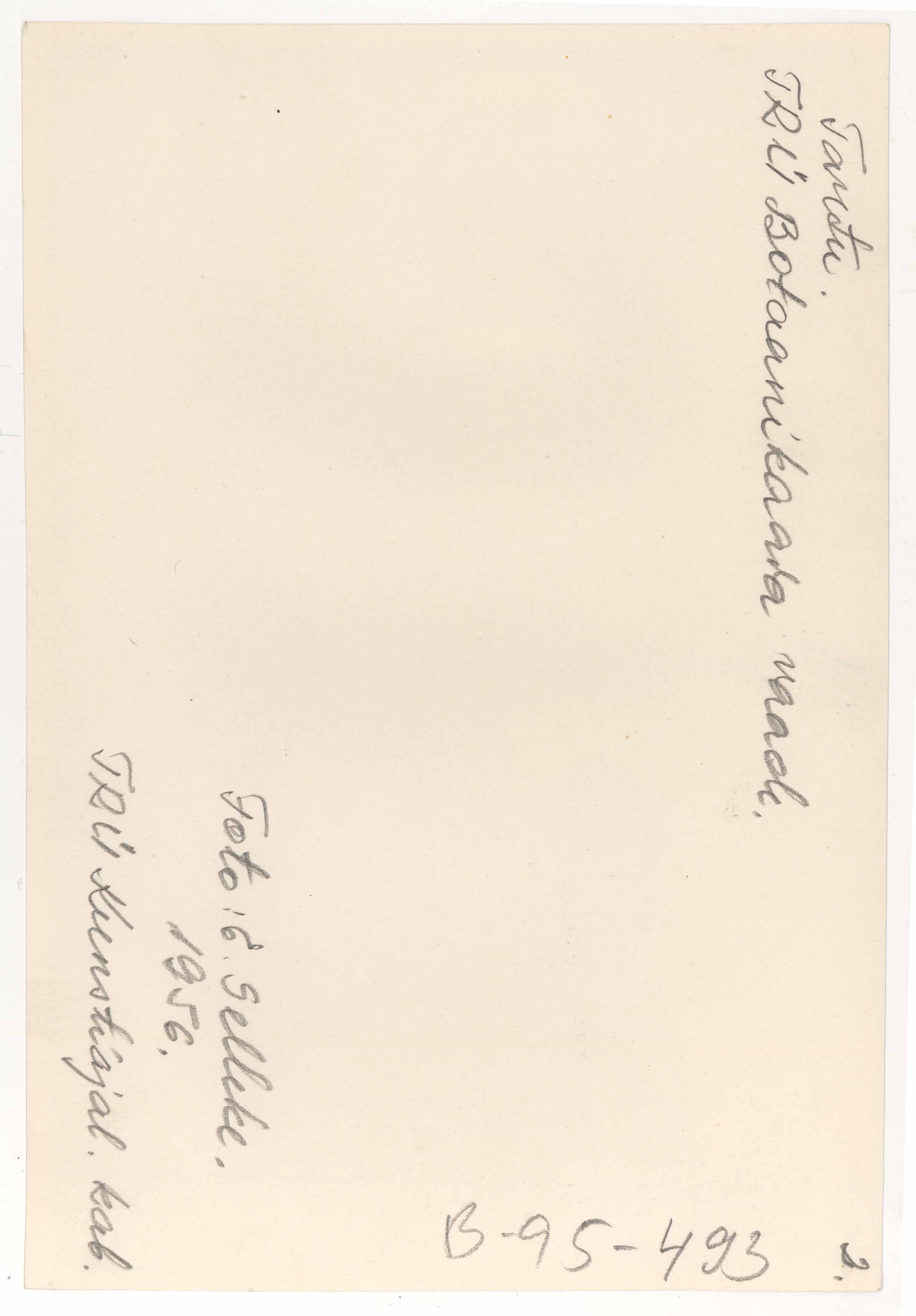 Tekst foto tagaküljel: Tartu. TRÜ Botaanikaaia vaade. Foto: E. Selleke. 1956. TRÜ Kunstiajaloo Kab.