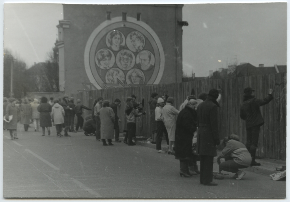 Üliõpilased plangujoonistuste või -maalingute võistlusel Tartus Ülikooli tänava alguses