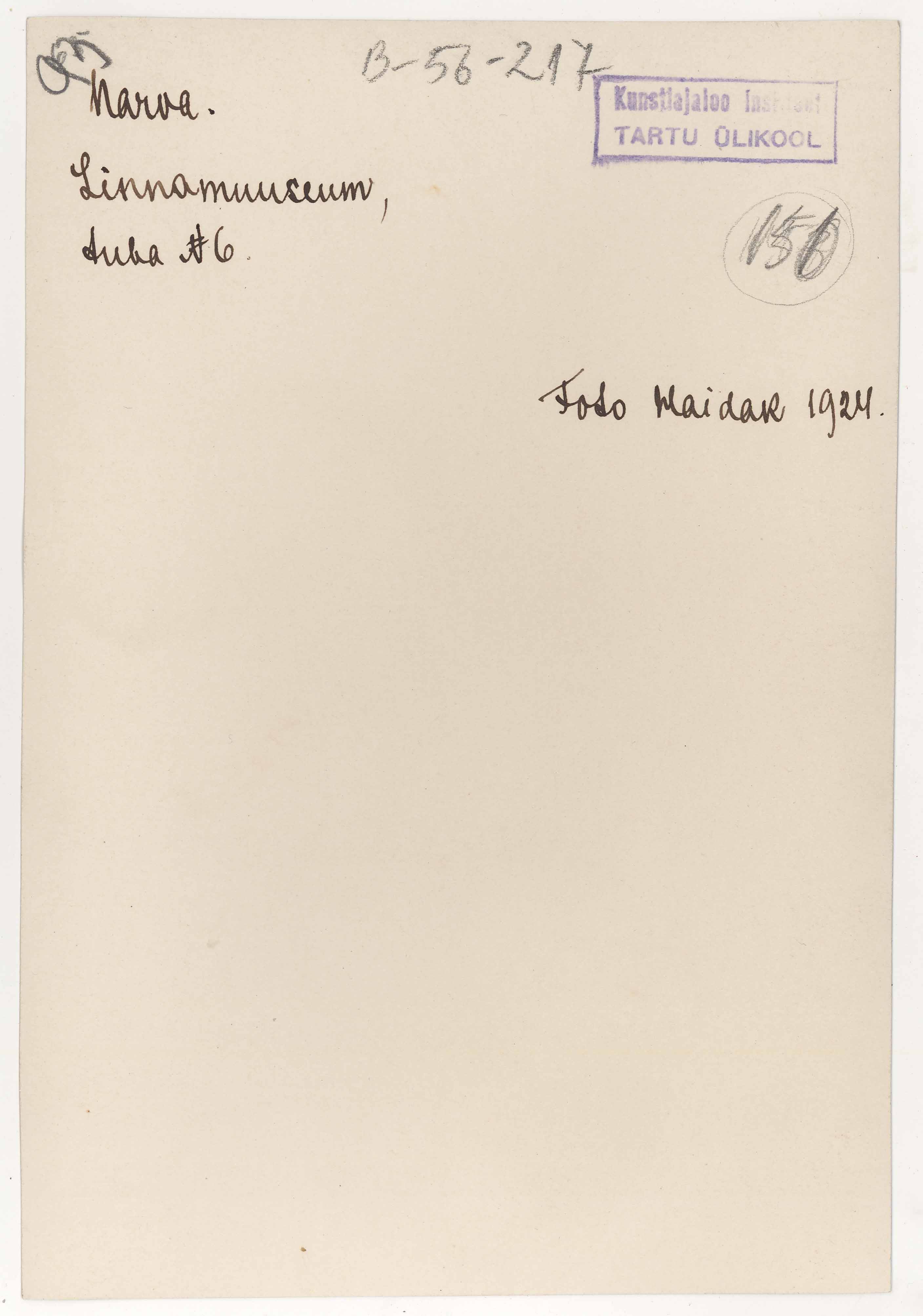 Tekst foto tagaküljel: Narva. Linnamuuseum, tuba N6. Foto Haidak 1924. Tempel: Instituut