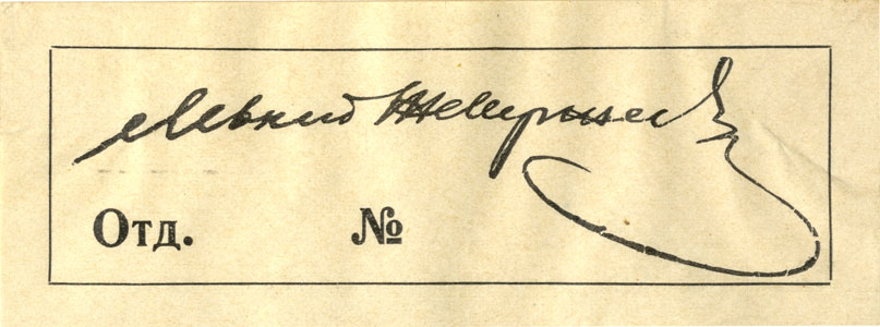 Nelinurkses raamistuses omaniku allkiri. Joonises all vasakul: ОТД. keskel: №