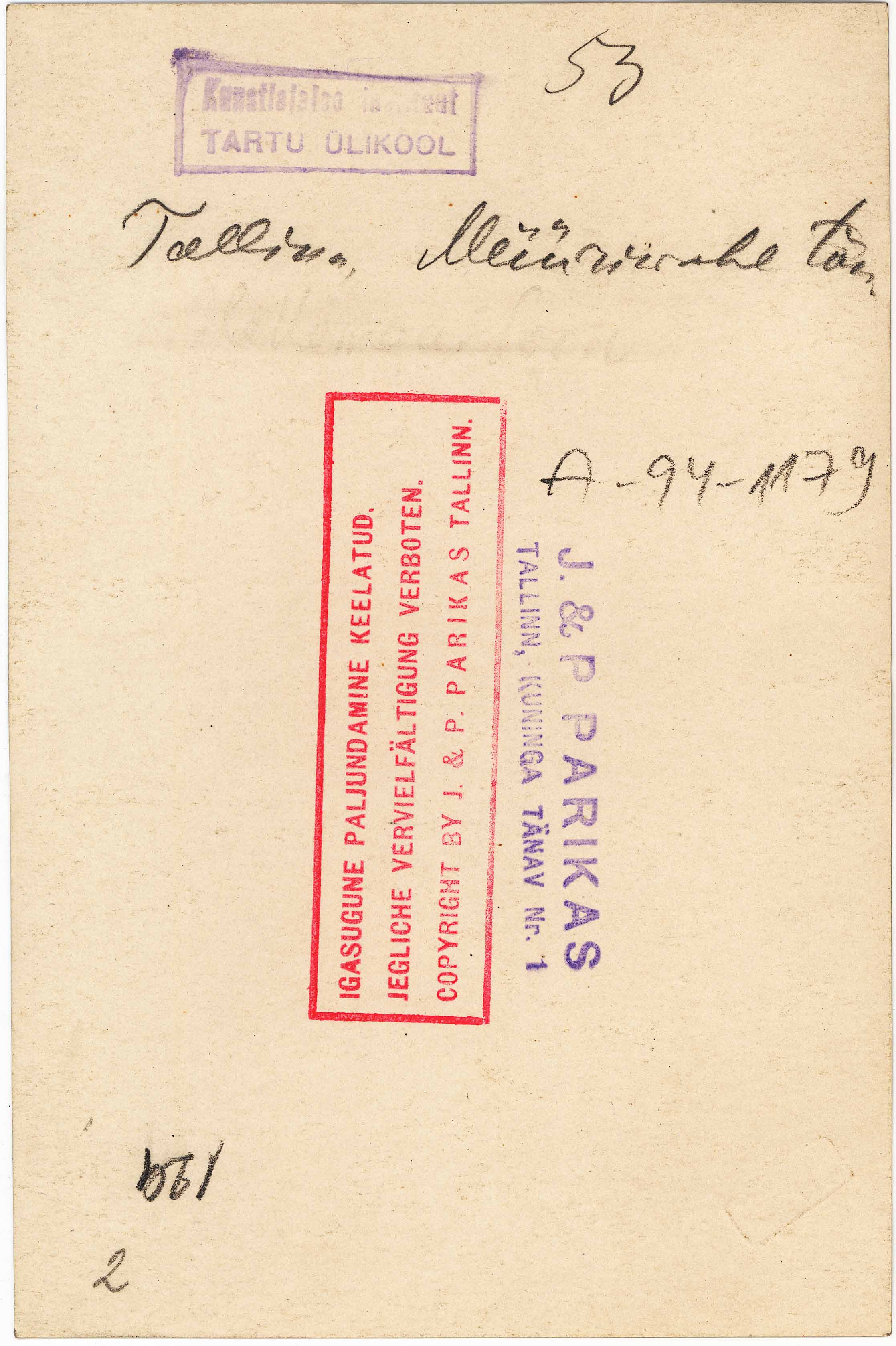 Tekst foto tagaküljel: 53 Tallinn, Müürivahe tän. Templid: J&P; Instituut