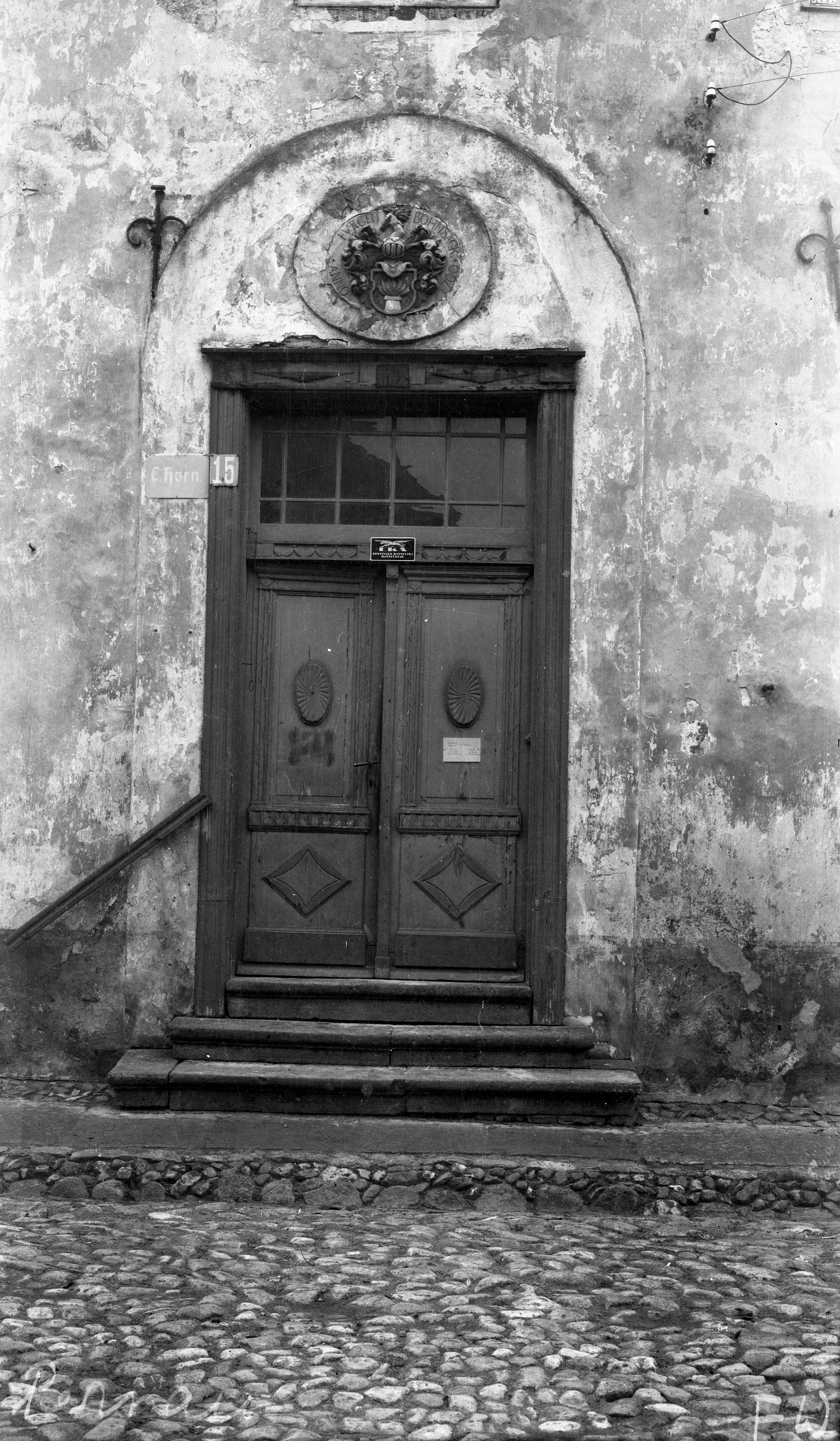Pärnu. Rüütli tn. 15 kivimaja portaal väljast. Hävinud Teises maailmasõjas