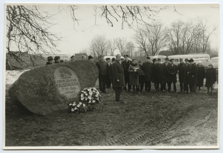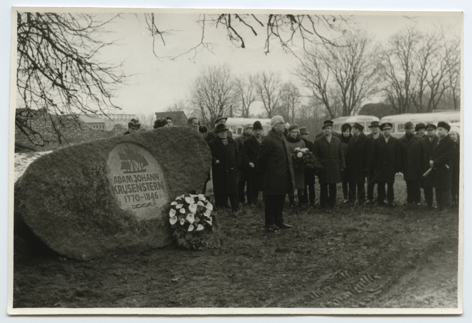 Adam Johann von Krusensterni 200. sünniaastapäeva tähistamine tema sünnikohas Hagudis mälestuskivi juures 1970. a. sügisel