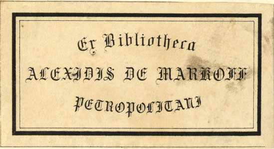 Nelinurkses raamistuses: Ex Bibliotheca / ΑLEXIDIS DE MARKOFF / PETROPOLITANI