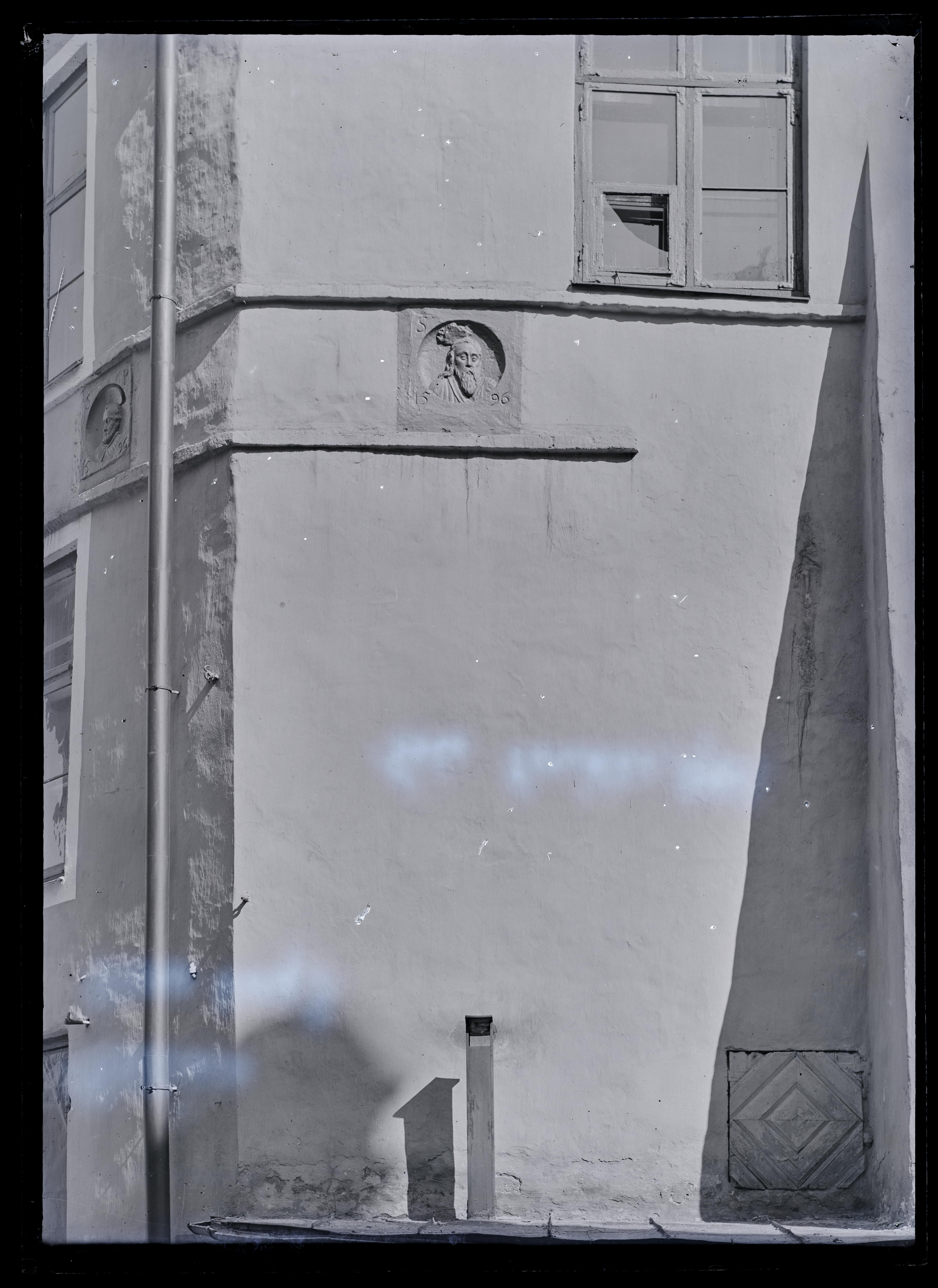 Tekst negatiivi ümbrikul: Tallinn. Vana turg 3. Osa seinas, medaljonidega. Foto Parikas, 1924. Tempel: Instituut