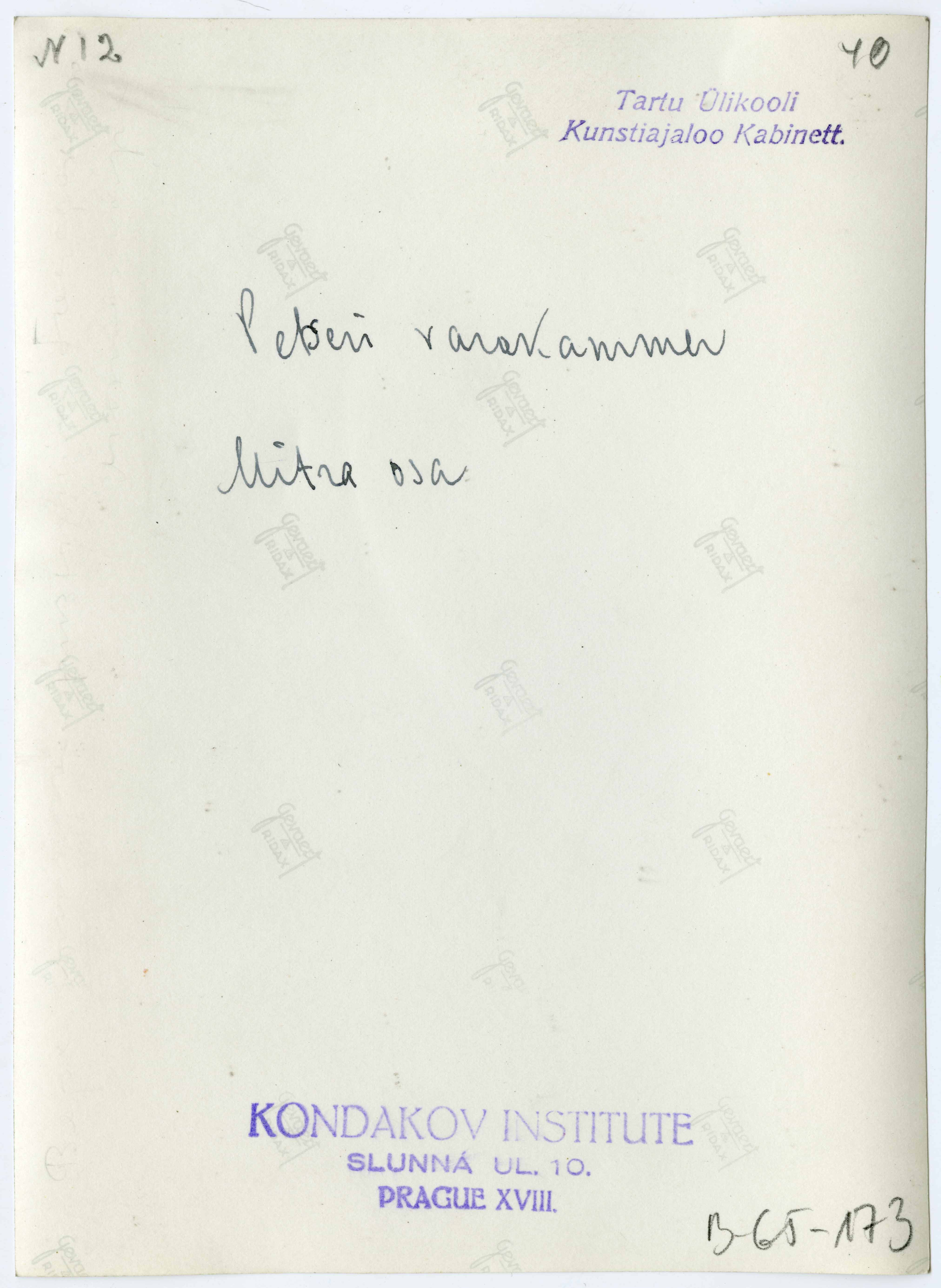 Tekst foto tagaküljel: Petseri. Varakammer. Mitra osa. N12. Templid: Kondakov; Kabinett