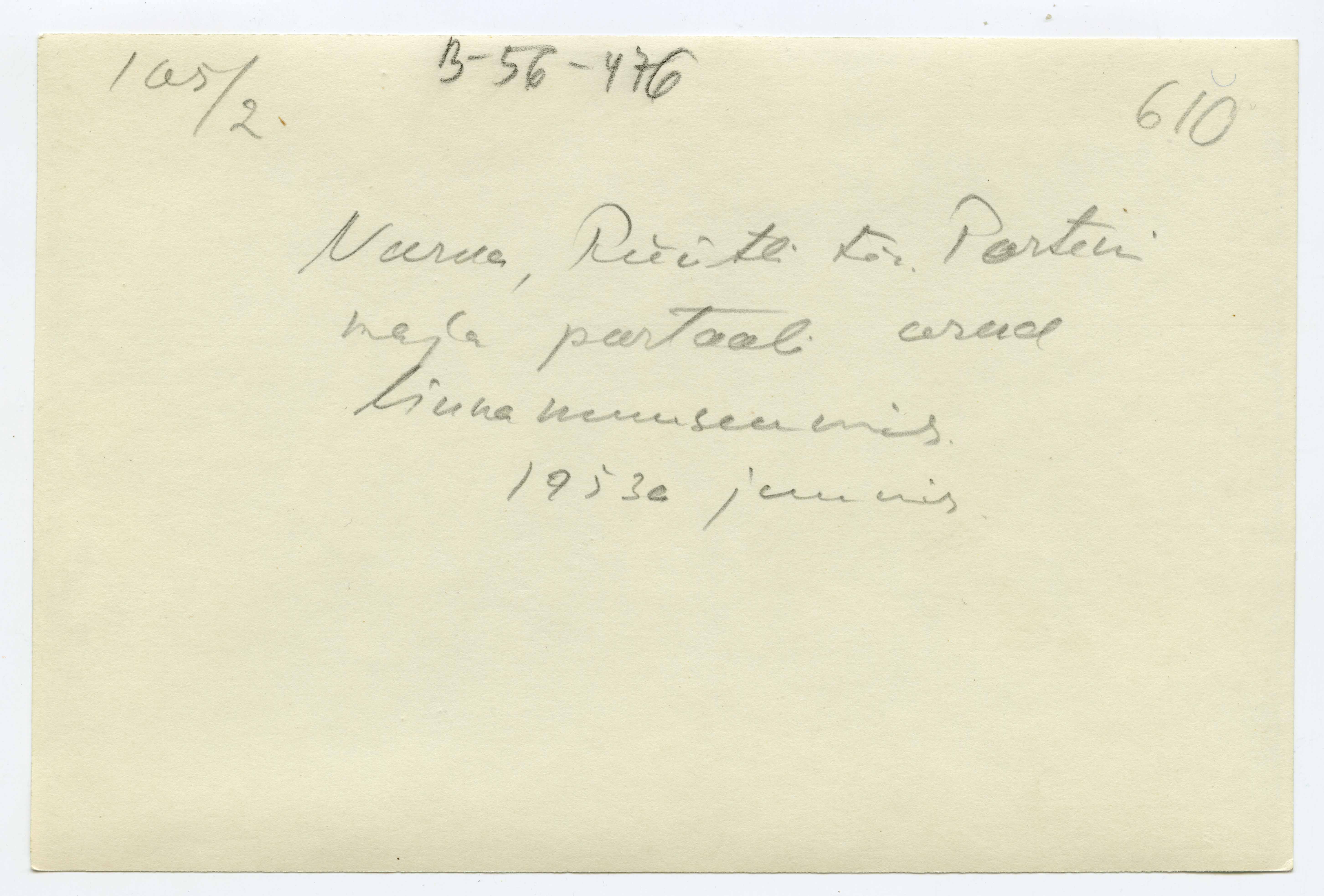 Tekst foto tagaküljel: Narva Rüütli tän Porteni maja portaali osad linnamuuseumis 1953 juunis