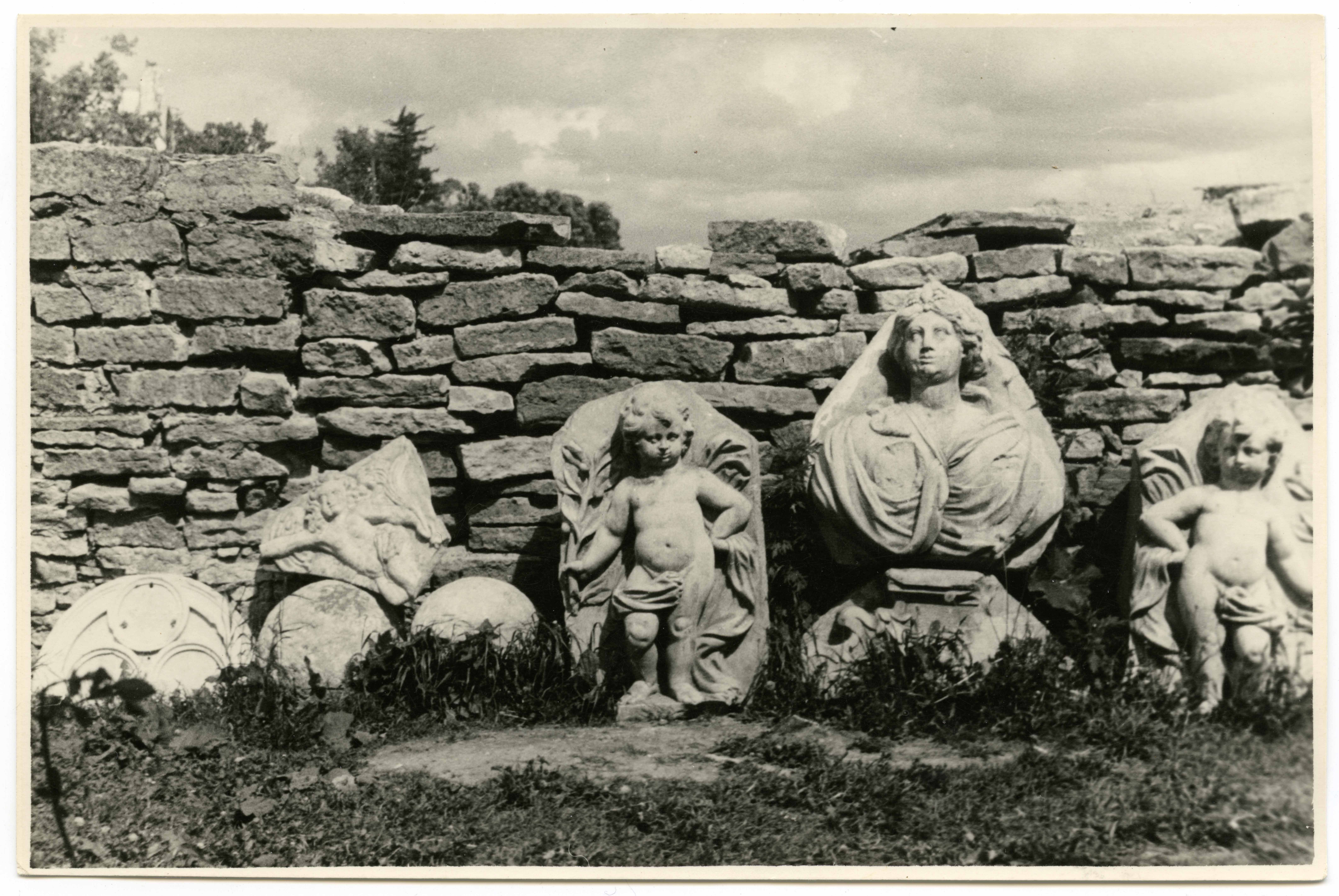 Narva. Demonteeritud H. Poorteni ja L. Numensi majade portaalide osad muuseumi hoovis
