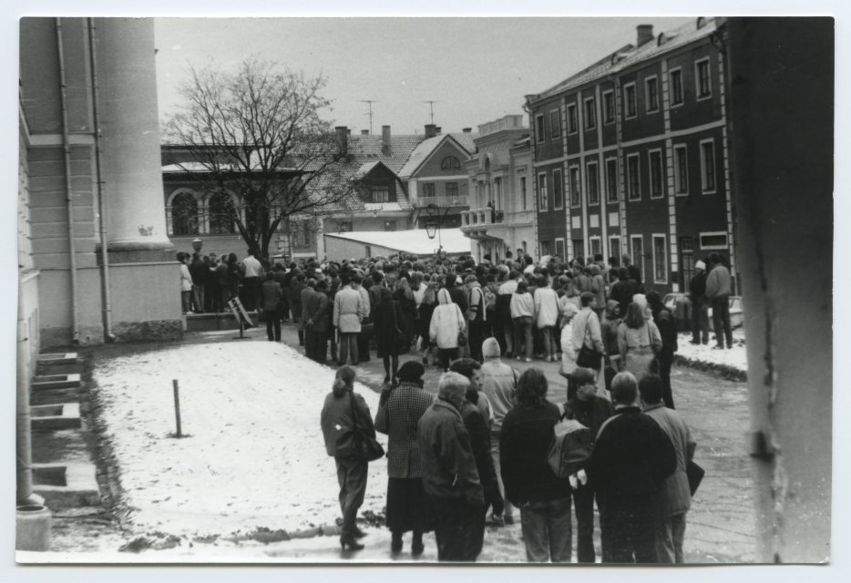 Tartu Ülikooli üliõpilaste stipendiumimeeleavaldus ülikooli peahoone ees 13. oktoobril 1993. a. kella 11 paiku