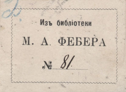 | dc.description | Nelinurkses raamistuses keskel: Изъ библiотеки / М. А. ФЕБЕРА / № ... | |