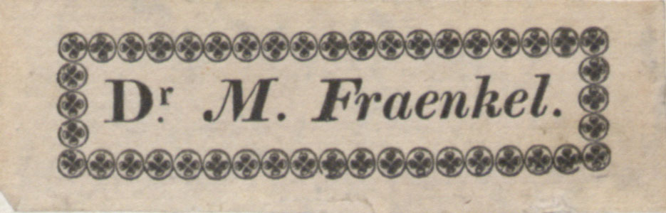 Nelinurkses ornamenteeritud raamistuses: Dr. M. Fraenkel.