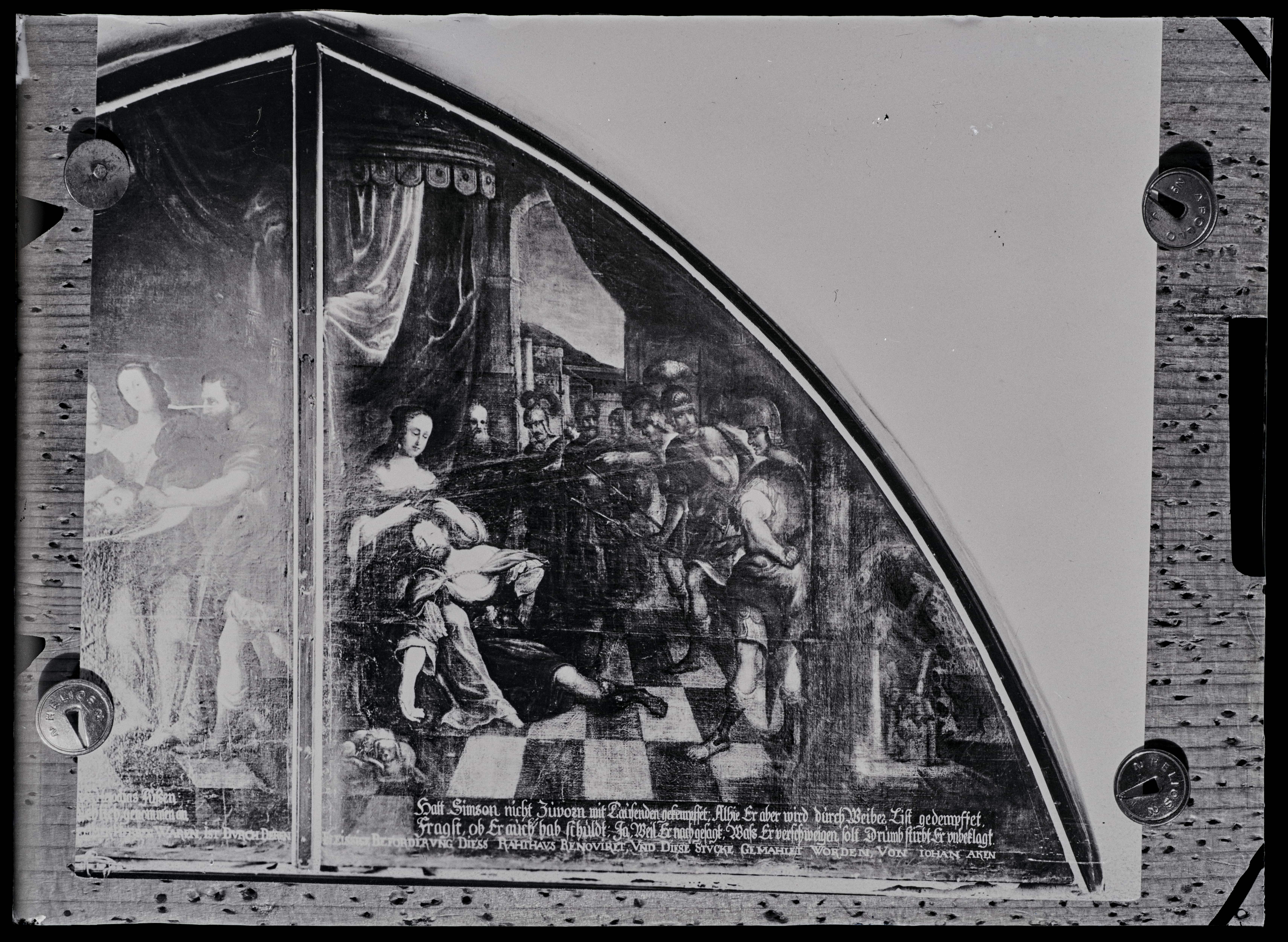 Tallinn. All-linn. Raekoda. Parempoolne lünetimaal Raesaali lääneseina lõunapoolses võlvikus. "Simson ja Delila". Johannes Aken. 1667.