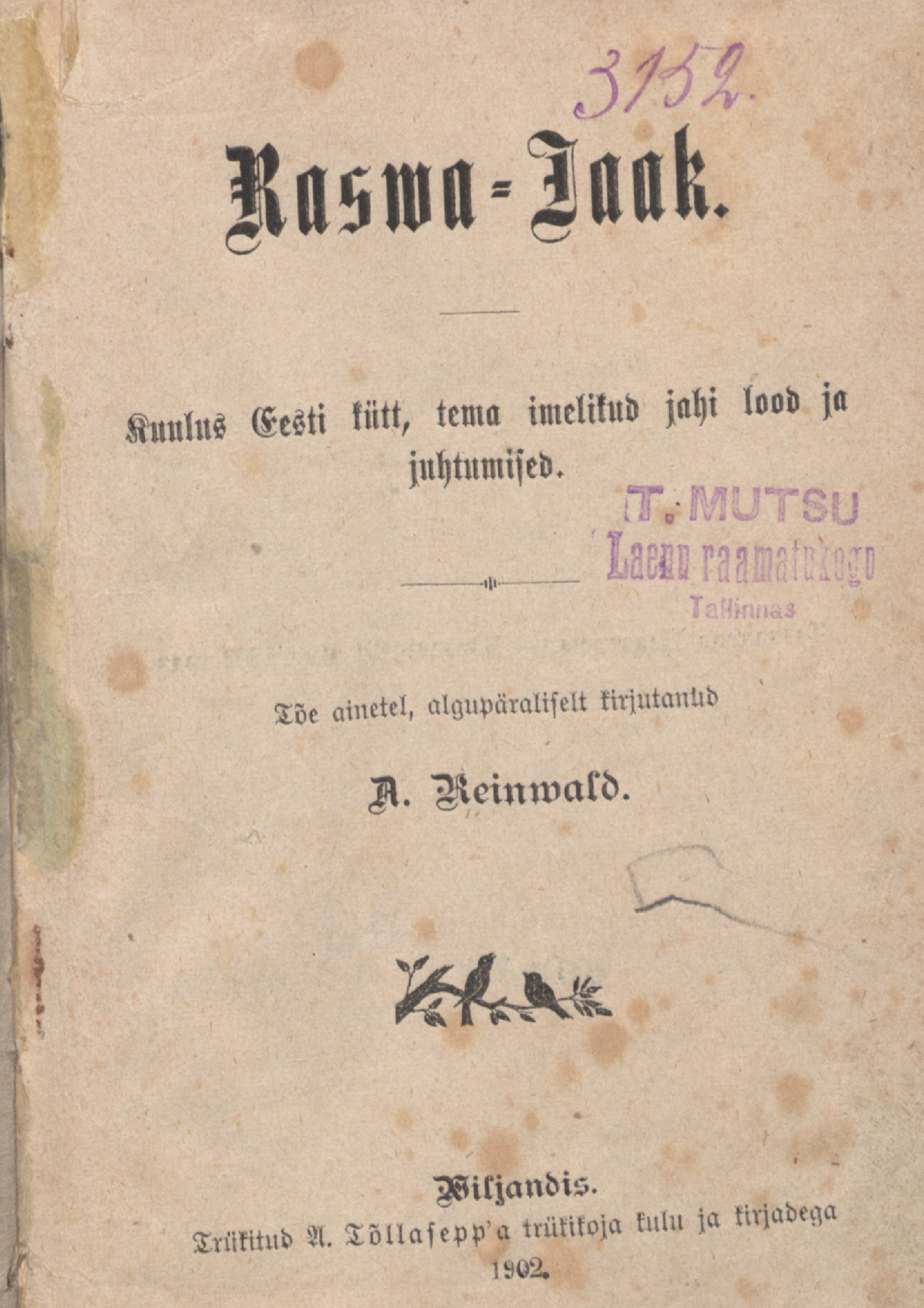 Raswa-Jaak : kuulus Eesti kütt, tema imelikud jahi lood ja juhtumised