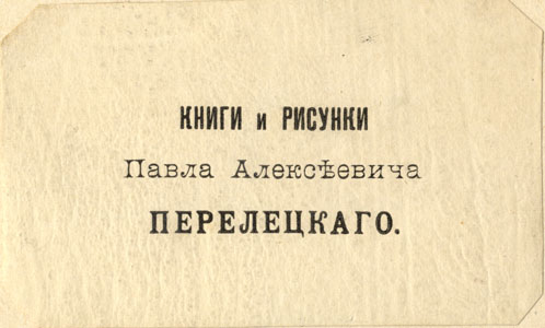 | dc.description | Lehel tekst: КНИГИ И РИСУНКИ / Павла Алексѣевича / ПЕРЕЛЕЦКАГО. | |