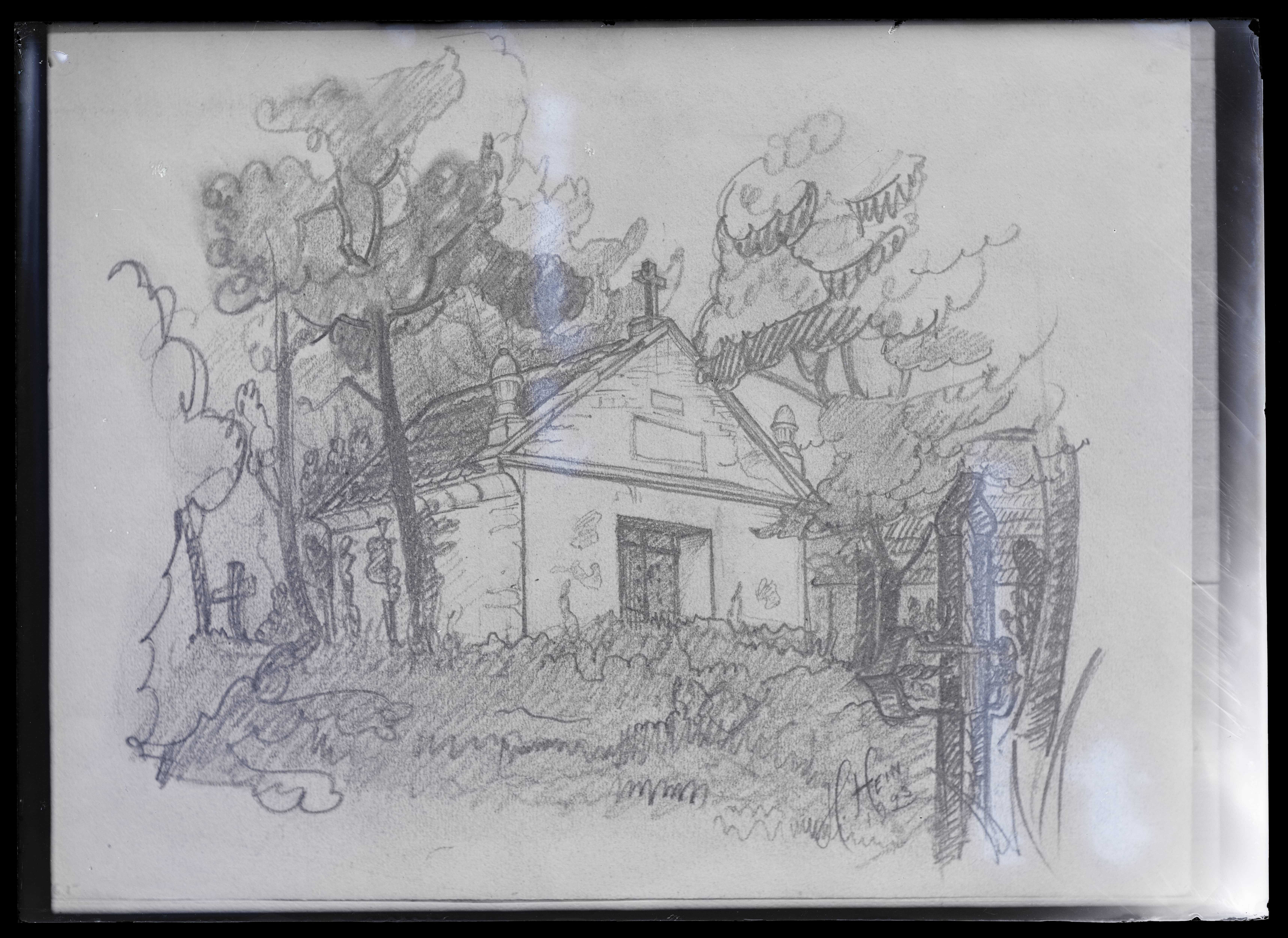 Karja Katariina ja Nikolause kiriku juures oleva kabeli akvarelljoonis. H. Hein 1923.a.