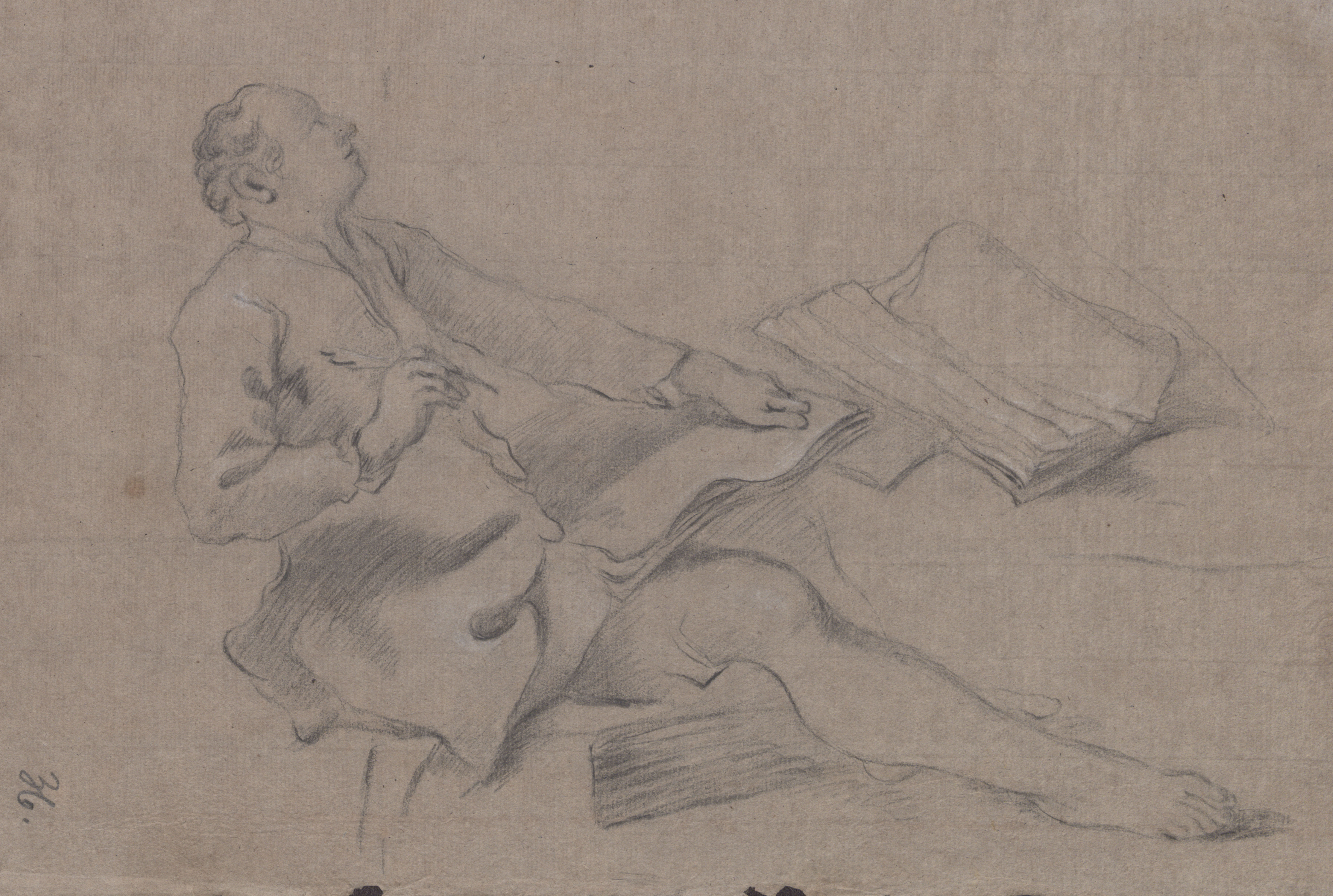 Istuv mees sule ja paberilehtedega