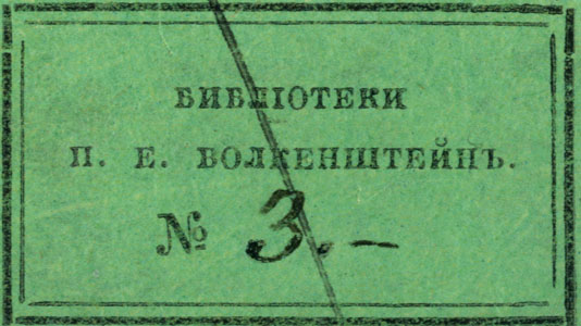 Nelinurkses raamis: БИБЛОТЕКИ / П. Е. ВОЛКЕНШТЕЙНЪ. / №