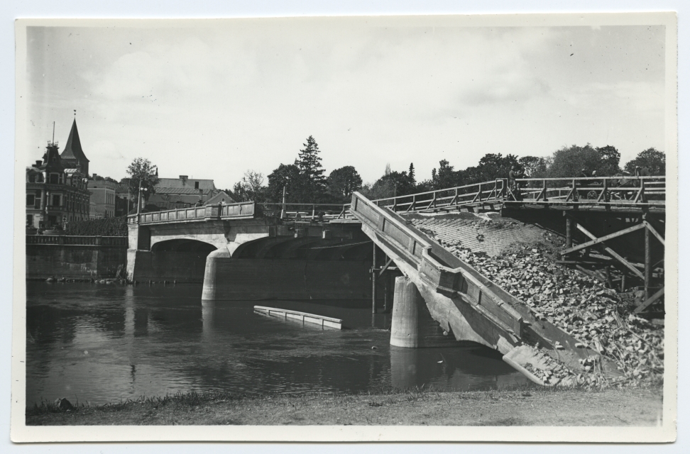 Tartu. Purustatud Vabadussild Emajõel 1941. a.