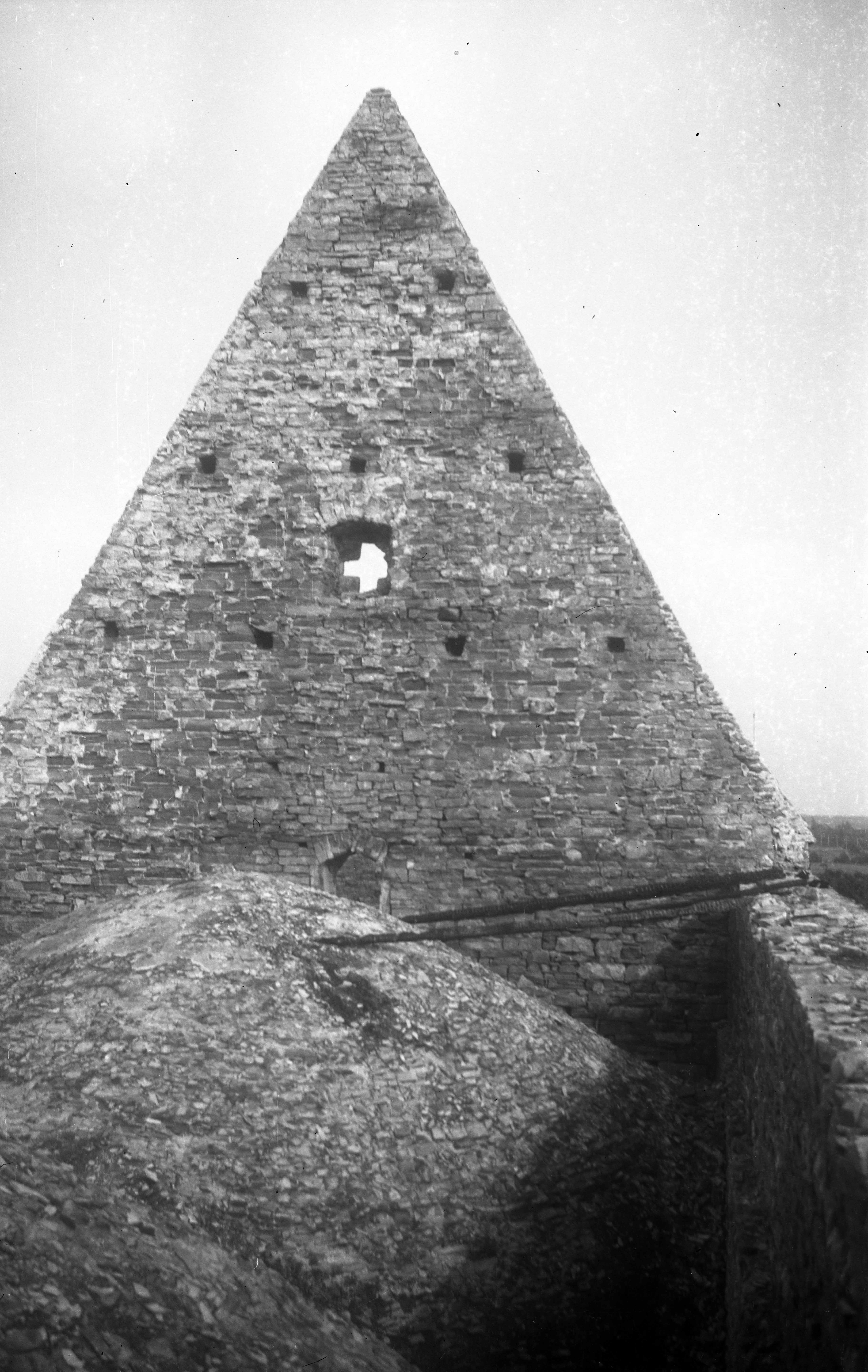 Muhu Katariina kirik. Pikihoone O-viilu vaade võlvidepealsest osast pärast kiriku põlemist 1941.a.