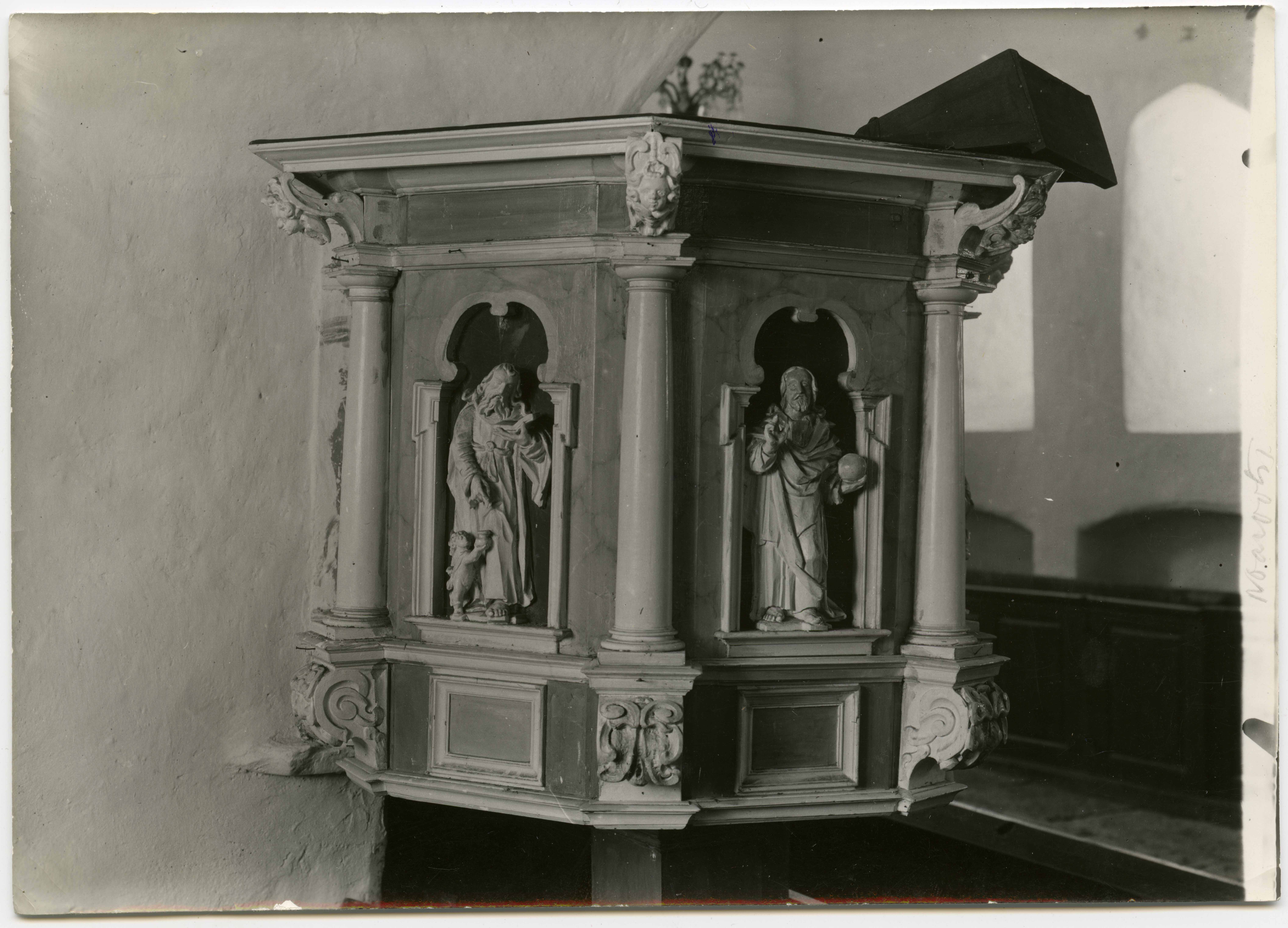 Tekst negatiivi ümbrikul: Noarootsi. Kantsel. Nuckö N12. Foto Grünthal 1933. Tartu Ülikooli Kunstiajaloo Kabinett 211-26. (1985)