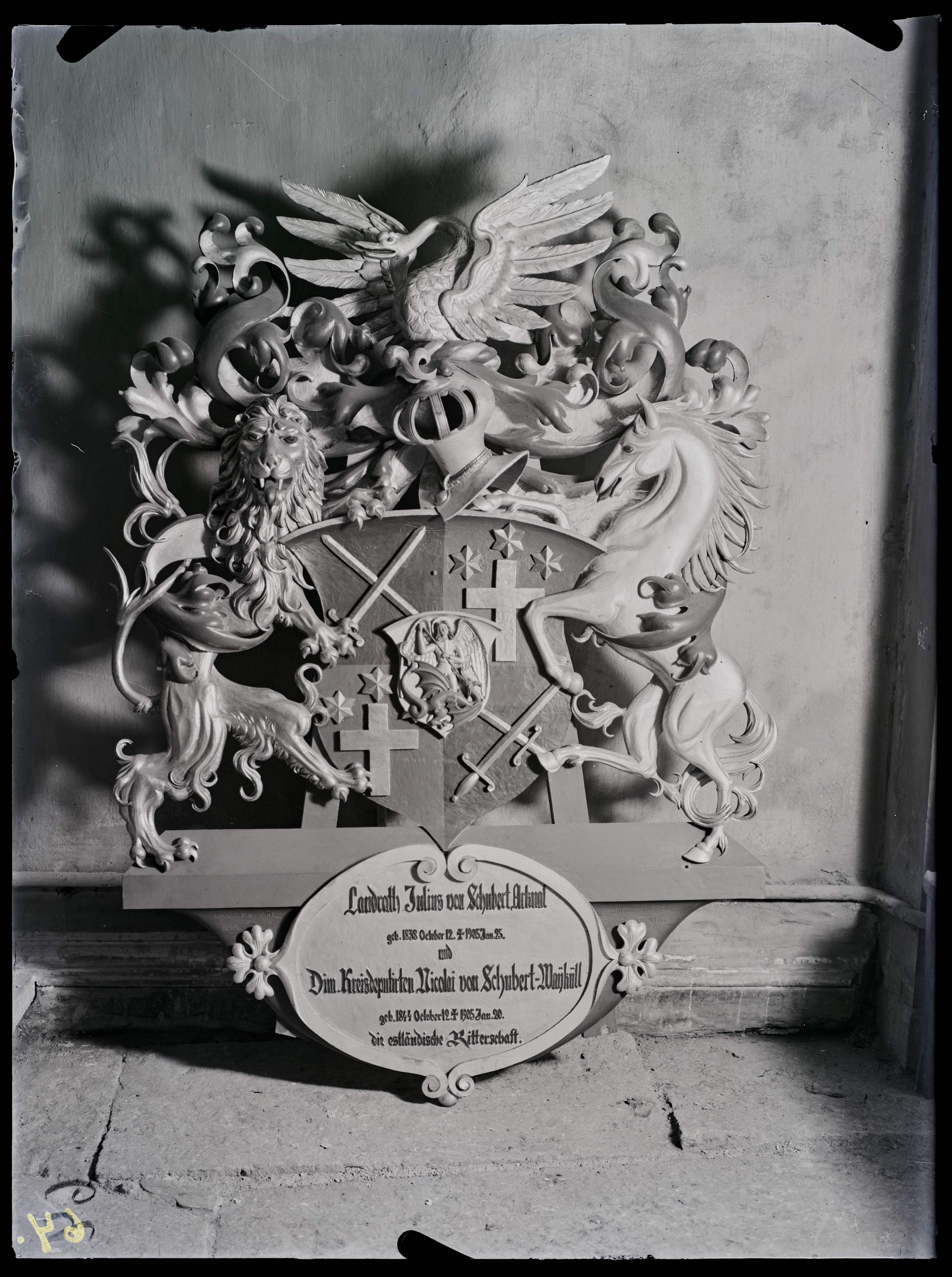 Tallinn. Toomkirik. Julius von Schuberti (12.10.1838-25.01.1905) ja Nicolai von Schubert'i (1844-1905) vappepitaaf