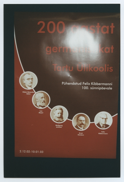 Feliks Kibbermanni 100. sünniaastapäevale pühendatud näitus "200 aastat germanistikat Tartu Ülikoolis" Tartu Ülikooli Raamatukogus 2002. a.