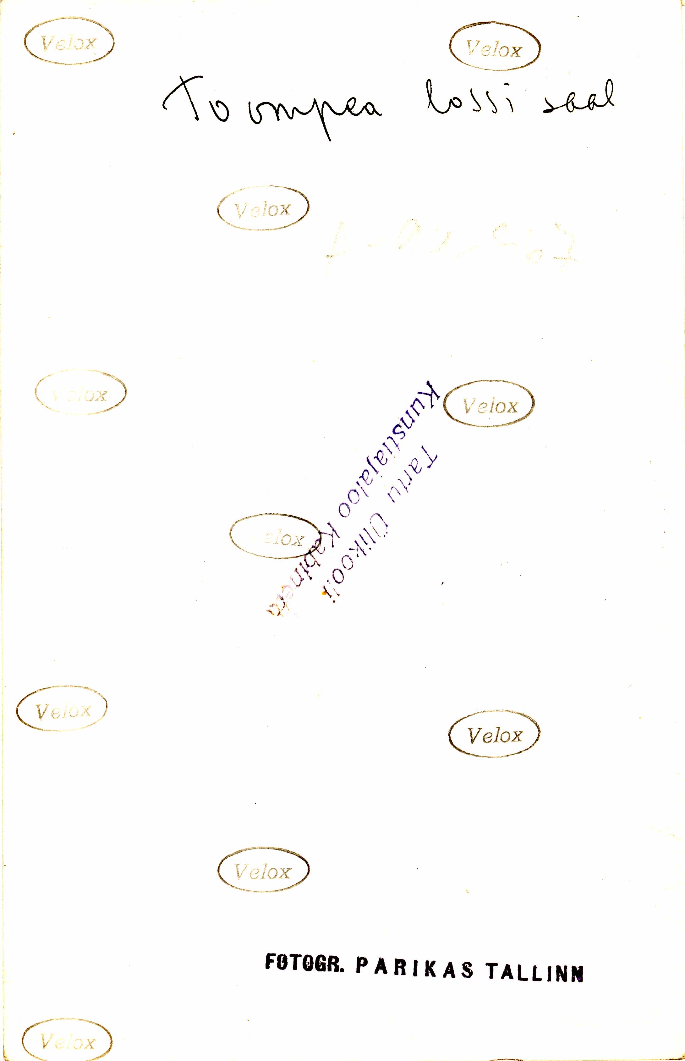 Tekst foto tagaküljel: Toompea lossi saal enne 1935. Templid: Fotogr Parikas; Kabinett