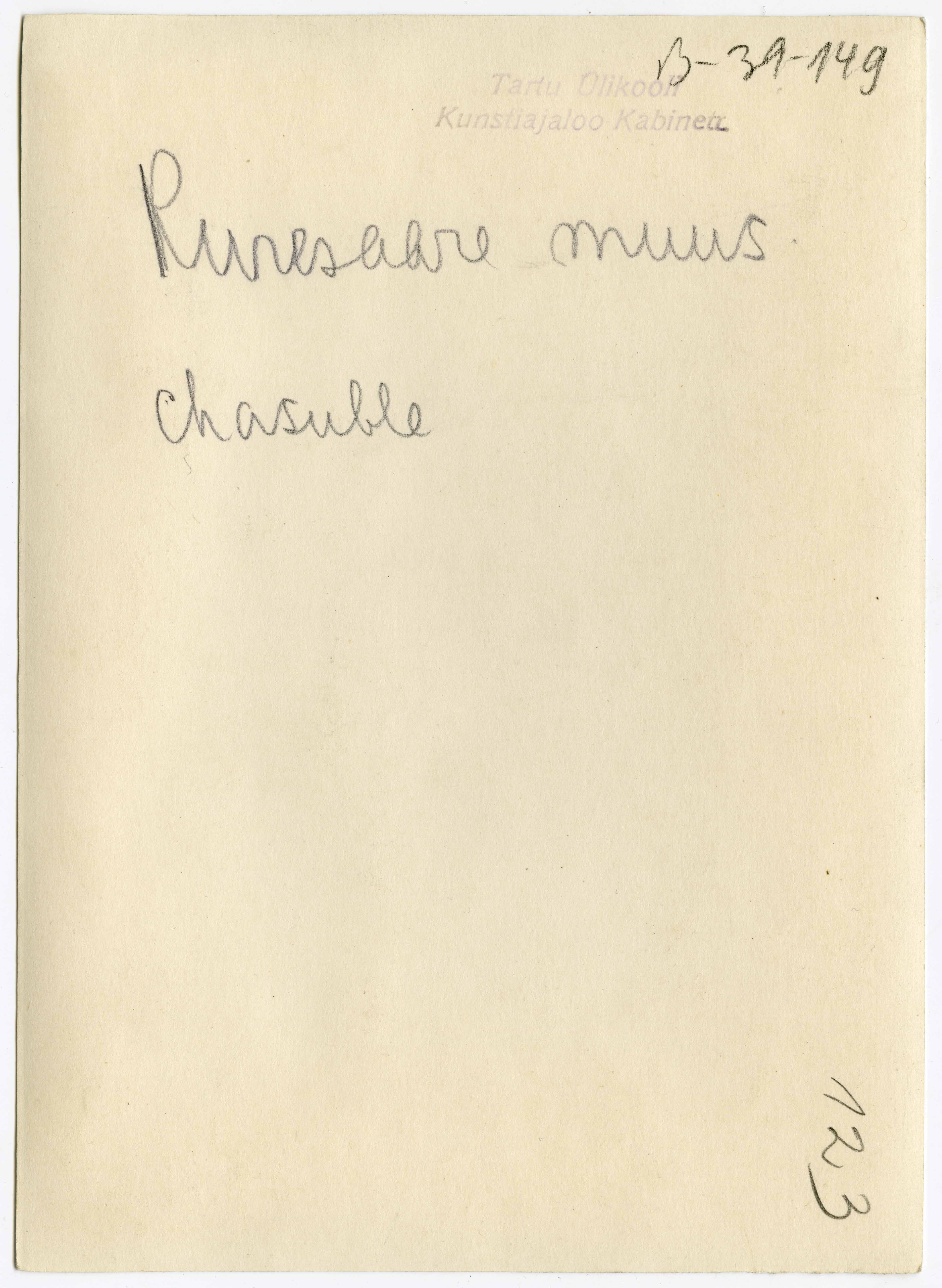 Tekst foto tagaküljel: Kuressaare muus. Chasuble. Tempel: Kabinett