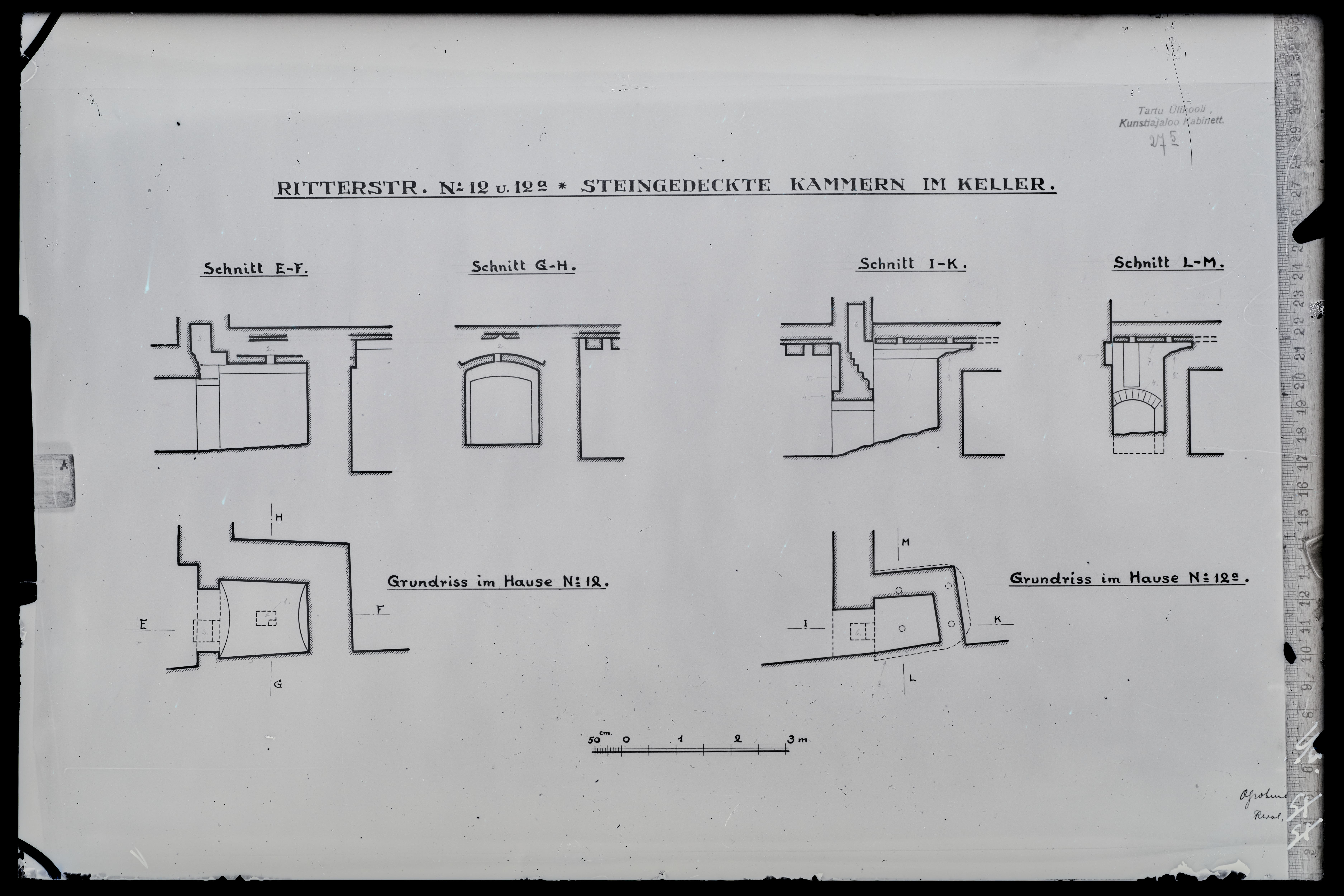 Tekst negatiivi ümbrikul: Nr. 77. Tallinn. Maja Rüütli t. 12 ja 12 a. Detailjoonised keldrist
