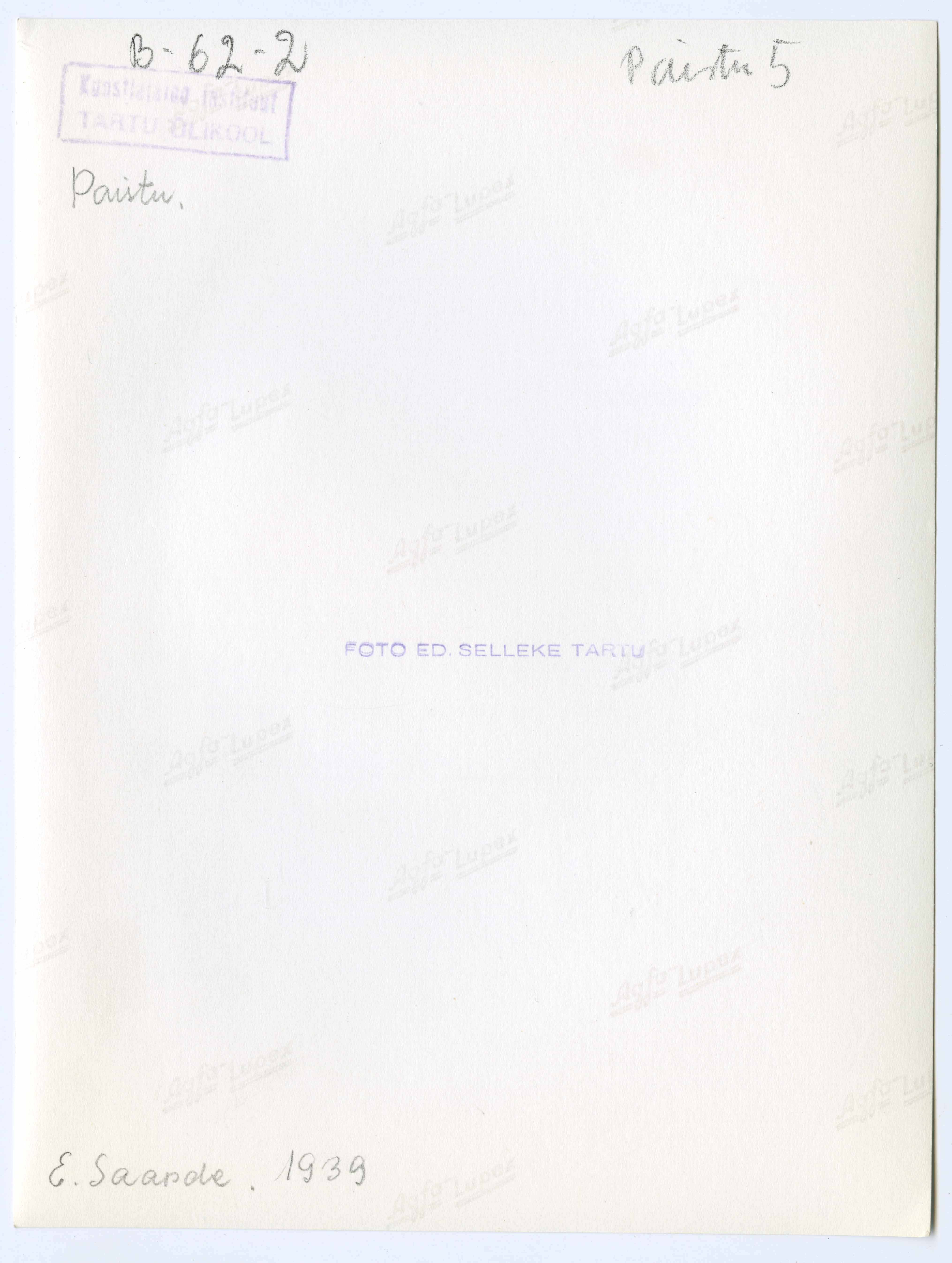 Tekst negatiivi ümbrikul: Paistu. Pikiläbilõige. Saadre 1939. Foto: E. Selleke, 1942. Tempel: Kunstiajaloo Instituut (1985)