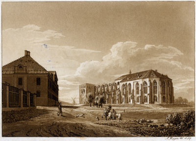 Eesti, Tartu, Toomemägi (Tartu), kohavaated, linnavaated, Tartu Ülikool, Tartu Ülikool. Raamatukogu, Tartu Ülikool. Kliinikum, hooned, kõrgkoolihooned, raamatukoguhooned, toomkirikud, baltisaksa, kunst, graafika, akvatinta, 1820-ndad, 19. saj.