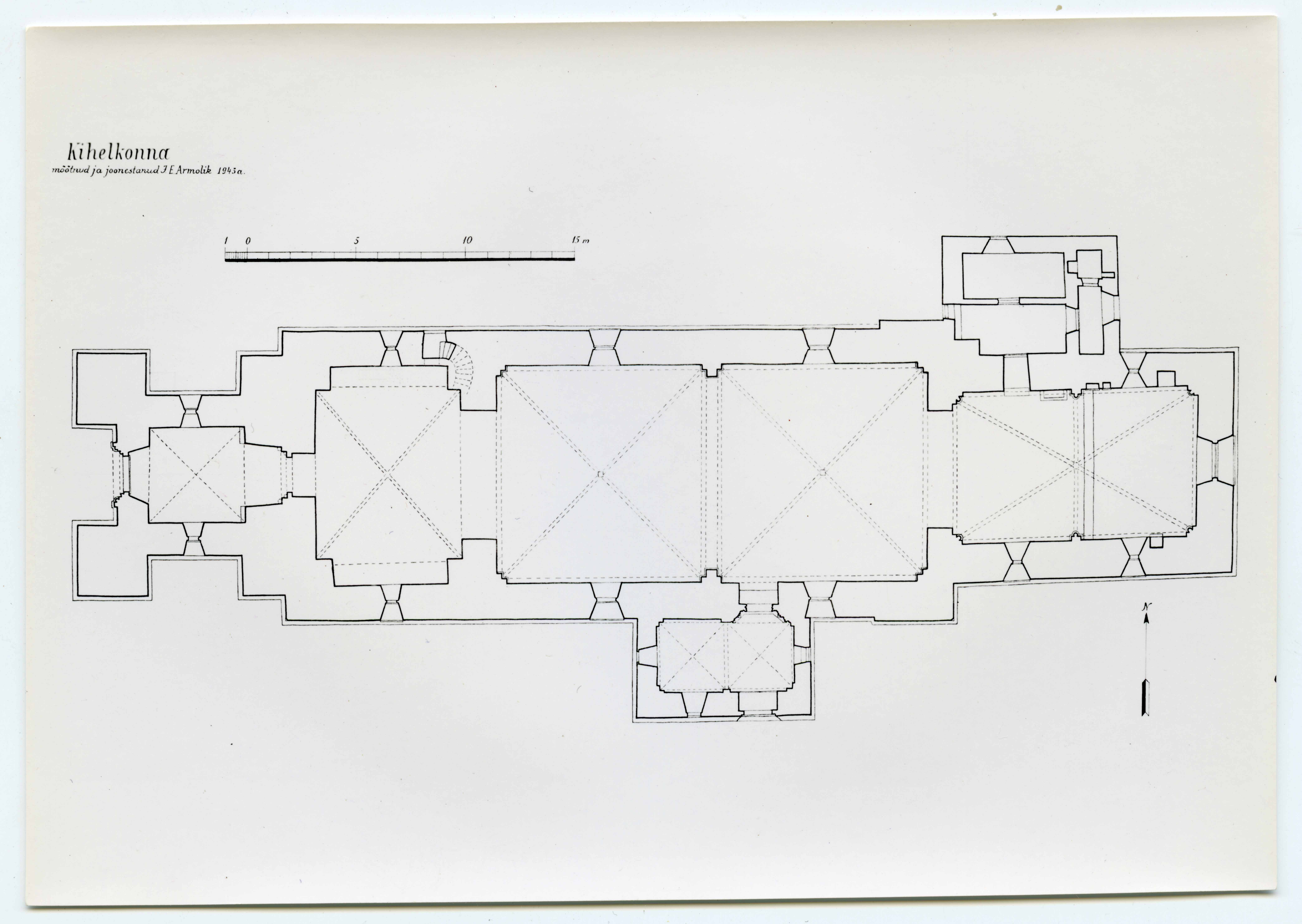 Kihelkonna Mihkli kirik. Põhiplaan. Koostanud J. E. Armolik 1943.a.
