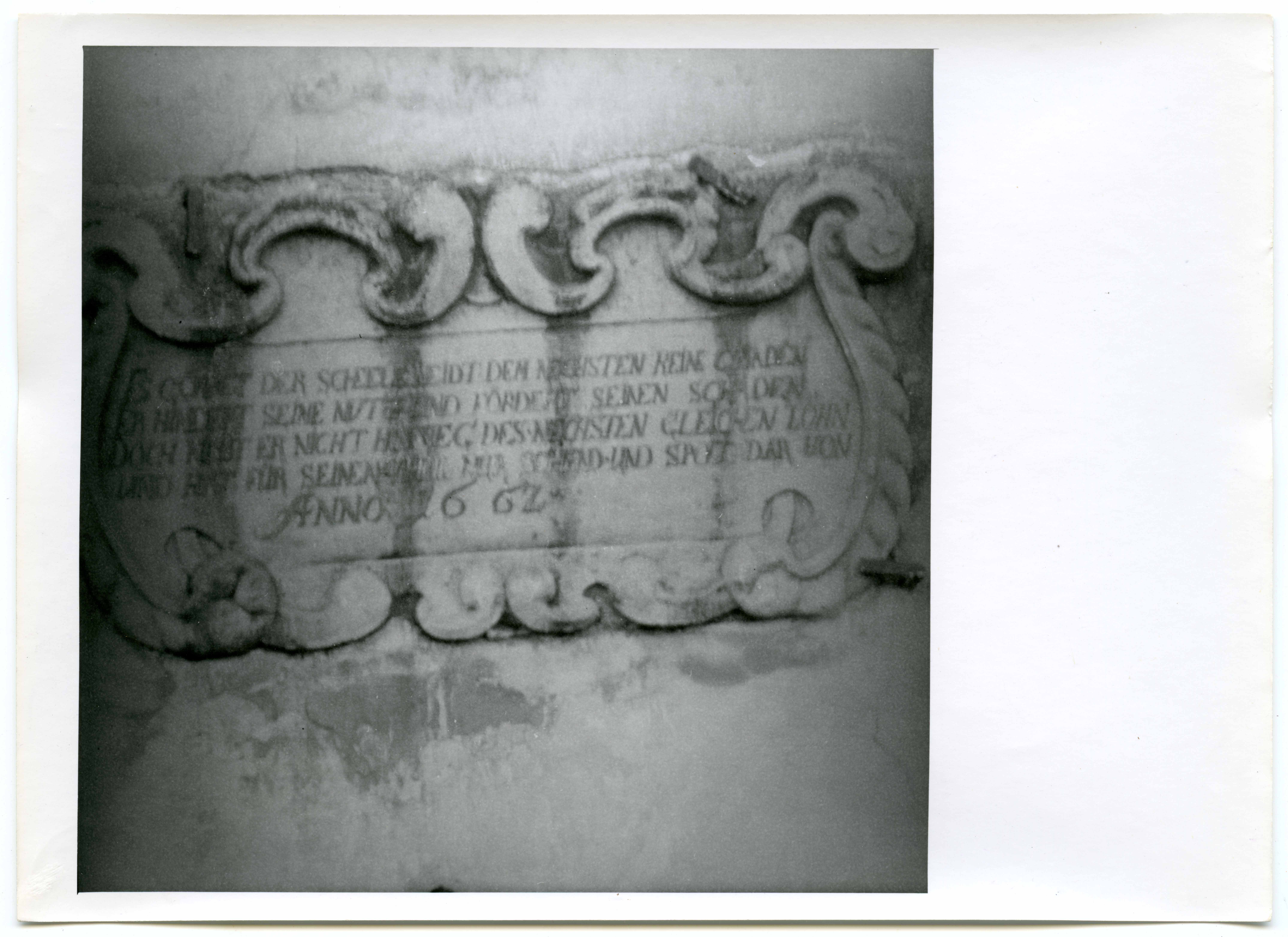 Narva. Suur tn 19, Jürgen Tunderfeldti maja portaali kartušš (J. Preuss/?/, 1662)