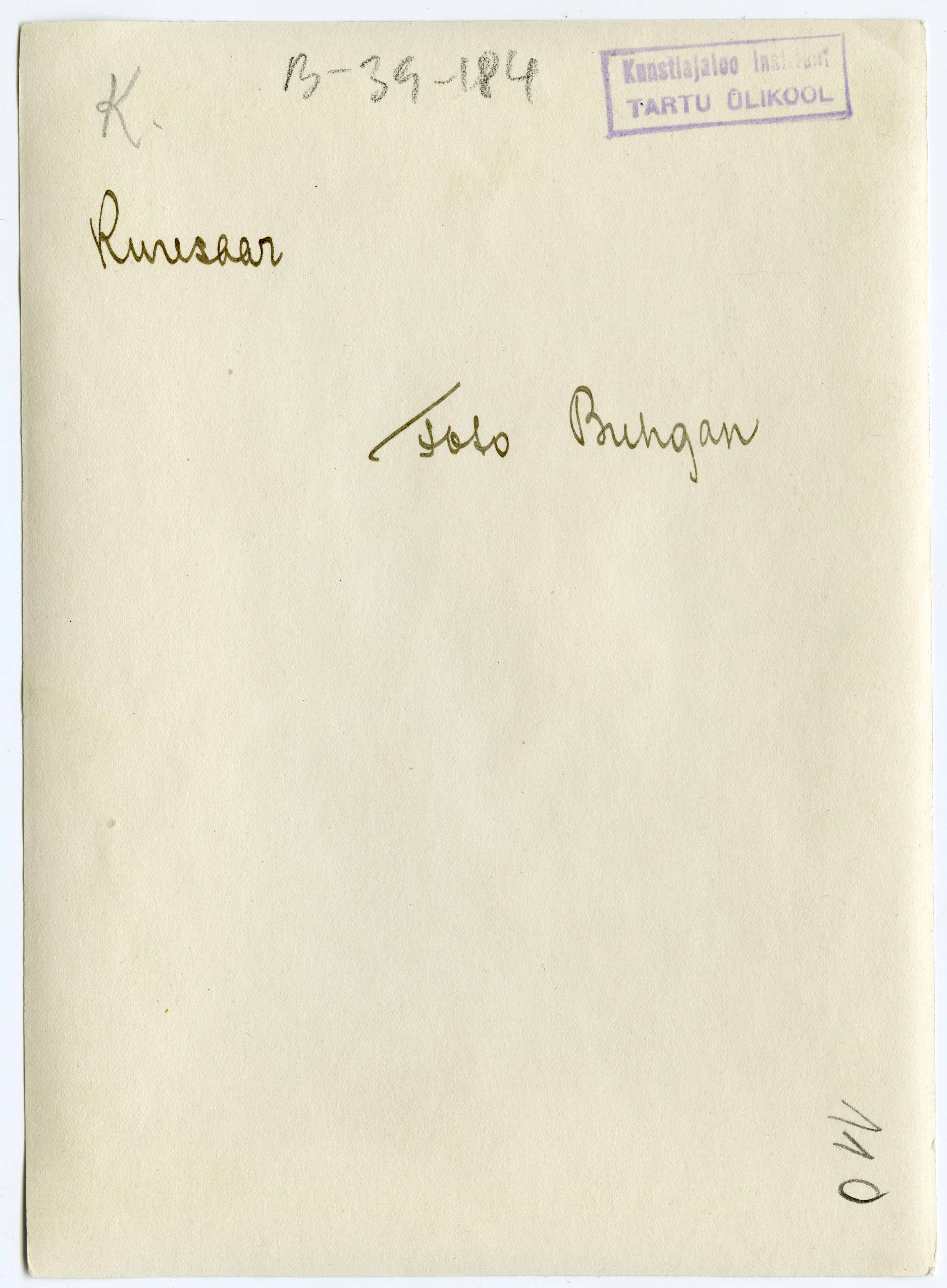 Tekst foto tagaküljel: Arensb. Mus. Foto Buhgan, Arensburg 1922 (negativ im Kunst Inst). Kunst. Inst.