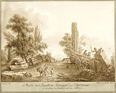 Itaalia, Sitsiilia, kohavaated, maastikud, baltisaksa, kunst, joonistus, seepia (kunst), 19. saj., 1820-ndad
