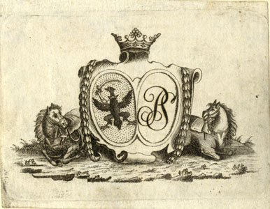 Vapp kahe ovaalse vapikilbi ja kahe hobusega, vasakpoolsel vapikilbil kotkas mõõgaga, parempoolsel monogramm PS.