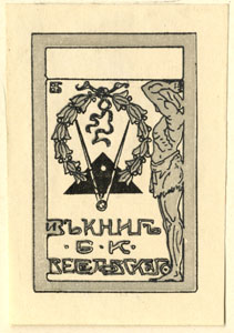 Nelinurkses raamis paremal Ermitaaži atlant, vasakul ülal loorberipärg sirkli ja nurkjoonlauaga. Joonises ülal vasakul signeering: ФБ all: ИЗЪ КНИГЪ / Б. К. ВЕСЕЛОВСКАГО;"Иваск
