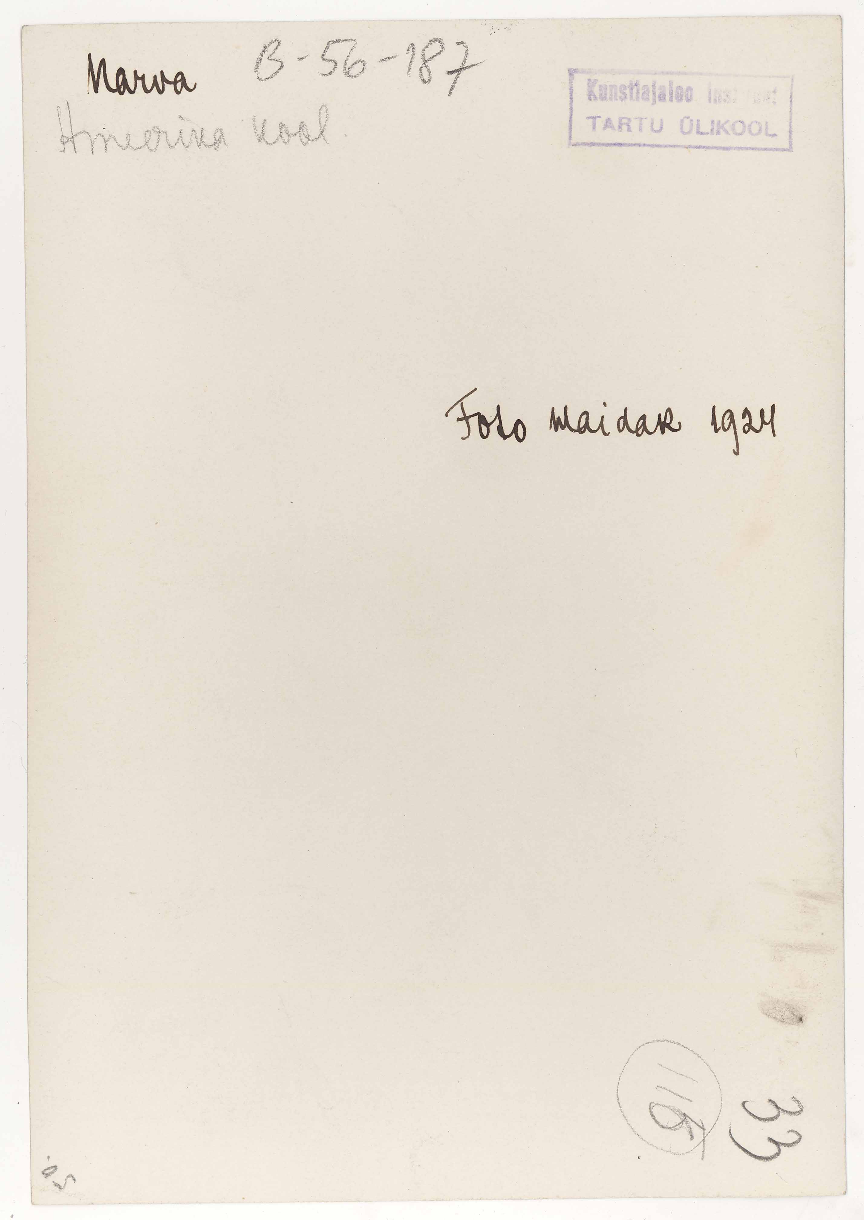 Tekst foto tagaküljel: Narva. Foto Haidak 1924. Ameerika kool. Tempel: Instituut