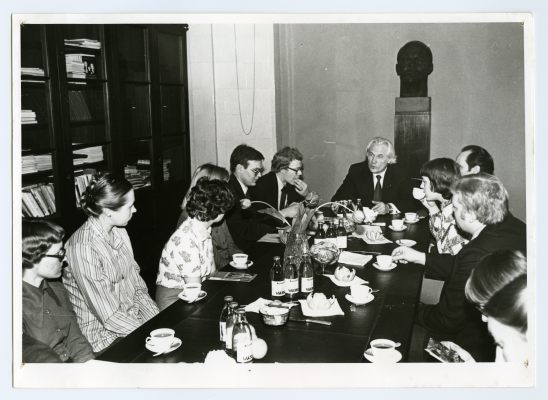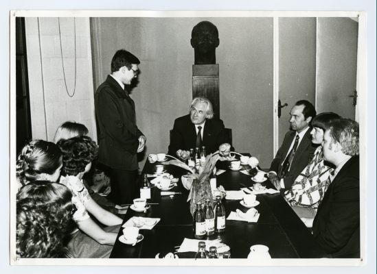 Rektor Arnold Koop kohtumas nimeliste stipendiumi saajatega 1980. a.