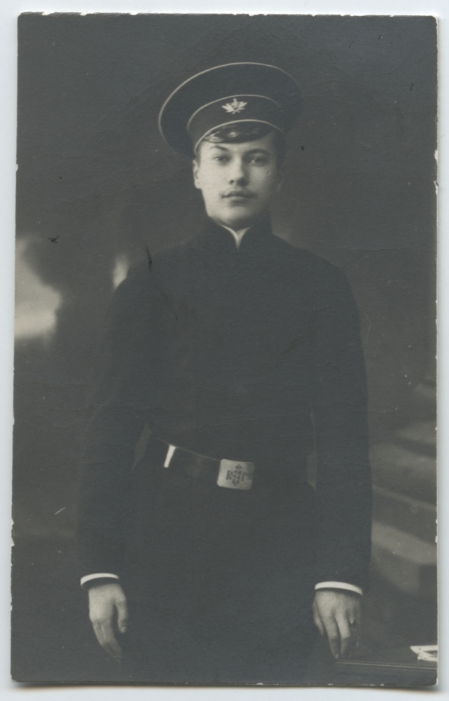 Herbert Normann Tartu Aleksandri Gümnaasiumi õpilase vormis, vormimütsiga. Kolmveerandfiguurportree