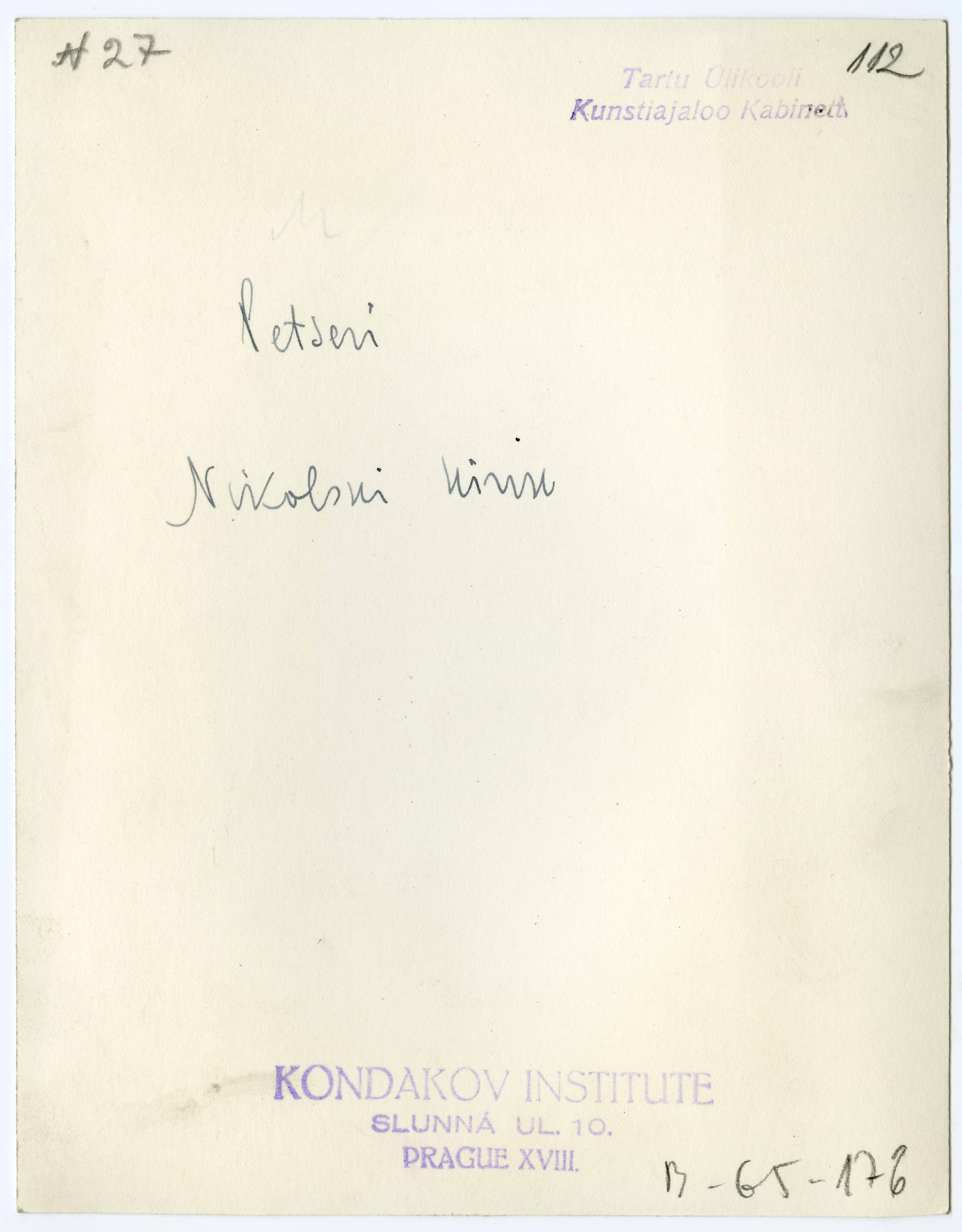 Tekst foto tagaküljel: Petseri. Nikolski kirik. N27. Templid: Kondakov; Kabinett
