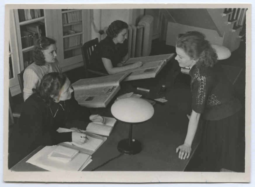 Üliõpilased Tartu ülikooli raamatukogu lugemissaalis töötamas 1952. a.