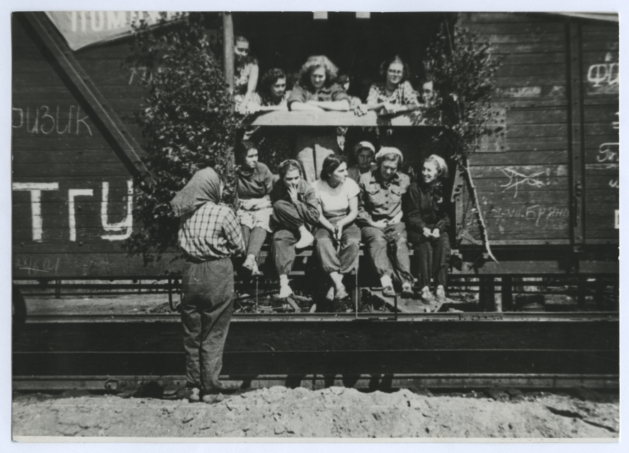 Grupp Tartu ülikooli üliõpilasi enne ärasõitu Kasahstani uudismaale 1956. a. suvel