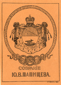 Lipu ja suurtükiga vapp sõõris. Joonises all paremal signeering: У. Г. ИВАСКЪ. 1904 all keskel: СОБРАНИЕ / Ю. В. ТАТИЩЕВА.
