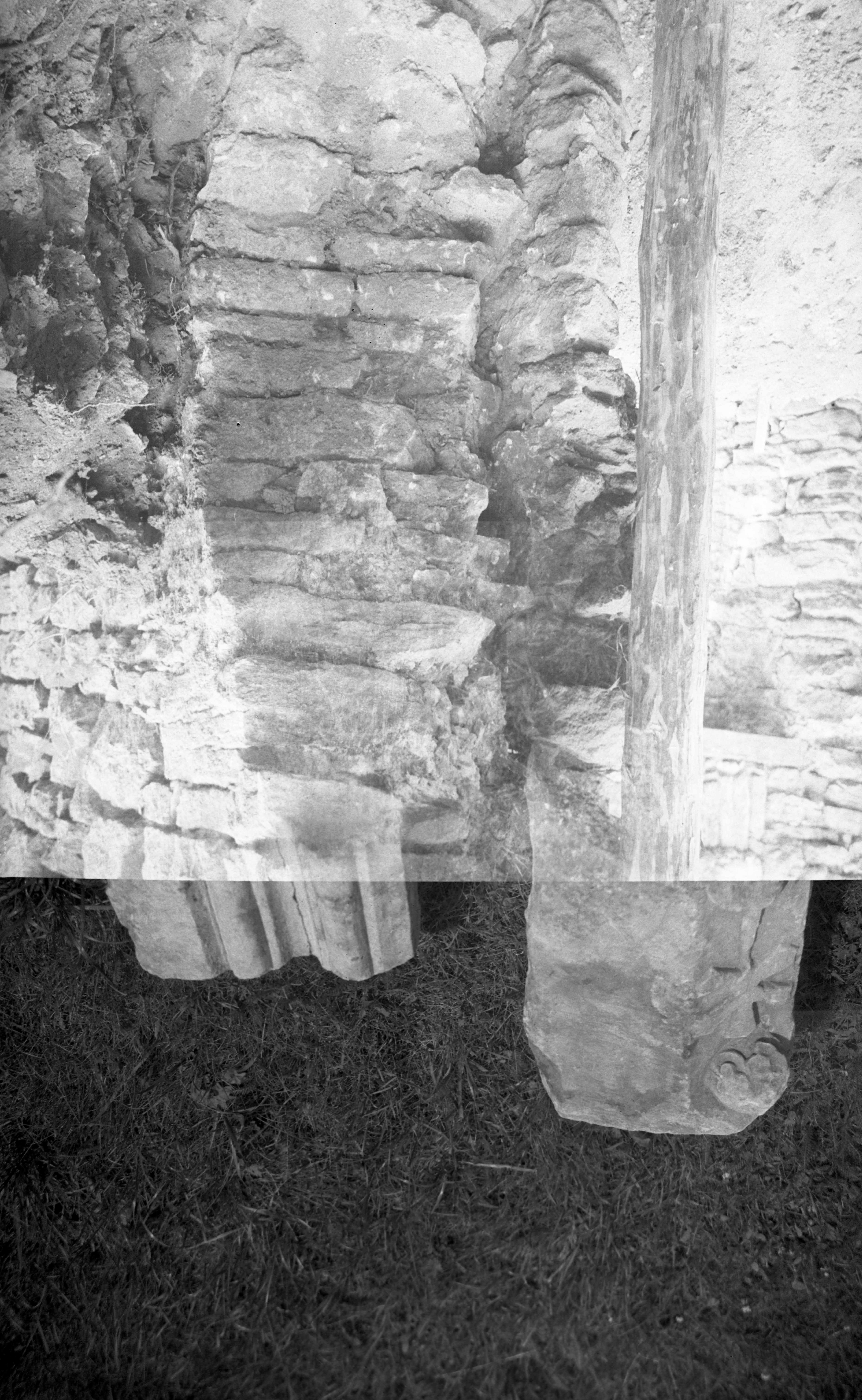Padise kloostri haakpüssitorni W-müüri ristvaade ja samast müürist leitud ornamentkivid 1938.a.