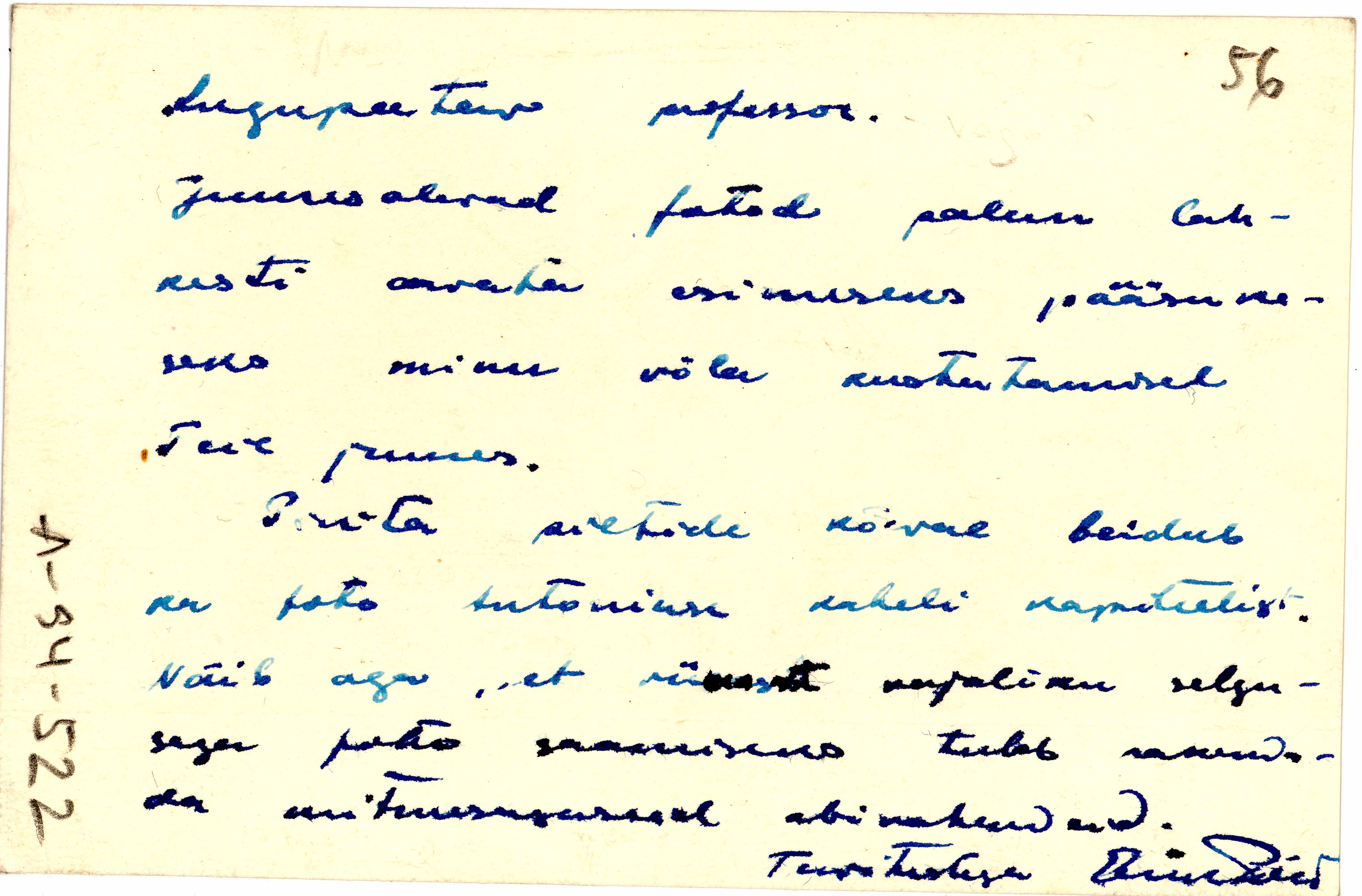 Tekst foto tagaküljel: Erik Raiküla? Kiri professor Vagale?