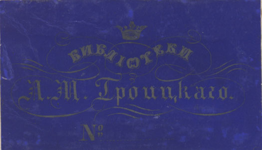 Kroon ja joonornament. Joonises keskel: БИБЛIОТЕКИ / А. М. Троицкаго. / № ...