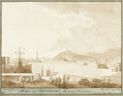 Hafen bey Barcelona. Festung Montjoui